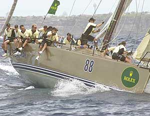 Ichi Ban znamená v japonštině „číslo jedna.“ Je to loď třídy Farr 52 a to že jsem se dostal do tak kvalitní posádky překvapilo i mně samotného. V posádce byli mimo jiné Matt Allen (majitel – skiper, ředitel CYCA), Roger Hickman (27x!!!!! Sydney – Hobart, několikanásobný vítěz tohoto závodu a shore manager australského týmu při Poháru Ameriky 92 v San Francisku), Gordon Maguire (Ir žijící v Austrálii – 4x kolem světa-Volvo a Withbread, naposledy Team News Corp – místní legenda, co se ocean racingu týče), Tom Braidwood (2x VOR a 2xAC naposledy team SEB, pak shore crew pro OneWorld), Adrien Finglas (1x AC-One Aus. 92´San Francisko). K týmu jsem se připojil až v předvečer závodu, což znamenalo, že s lodí jsem se seznámil rovnou v ostrém nasazení. Naštěstí se první den jela pouze jedna odpolední rozjížďka a tak jsme stihli ještě ranní trénink. První den jsem byl na lodi na zkoušku, když zklamu, půjdu odkud jsem přišel. Naštěstí jsem nezklamal, naopak jsem údajně byl příjemným překvapením. A to dokonce i přes to, že jsem si při předstartovních manévrech rozrazil grindrem obočí a „pokřtil Ichi Ban krví“. Krvácení (poměrně silné) mi zastavil až bowman „doktor“ Tomy Braidwood a to elektrikářskou páskou (černou :-))), když jsme viseli na zábradlí. Večer jsem se dozvěděl, že jsem nadobro součástí teamu a navíc mi bylo nabídnuto doručení lodi do Sydney po závodě.