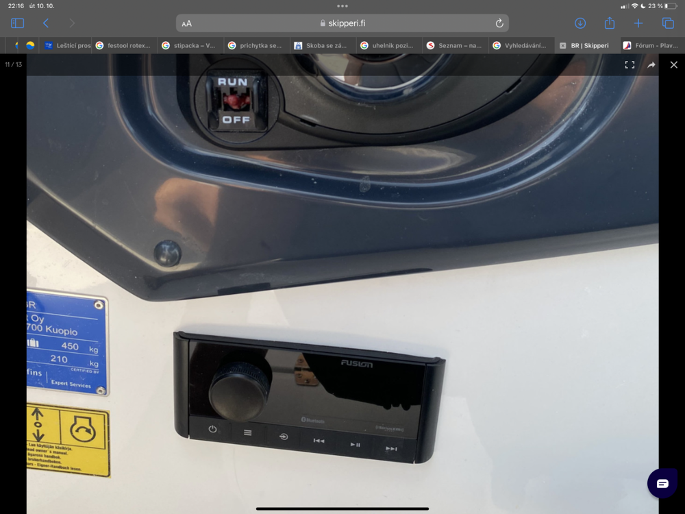 17. Včera proběhlo přihlášení lodě na plavební správě v Přerově. Cena 3100,- . Na místě jsme vyplnil formulář a doložil doklady. Smlouvu o nákupu lodě (stačila kopie s neověřenými podpisy ) , doklad CE, zaplatil jsem poplatky 3100,- a pánové si šly loď prohlédnout a nafotit. Zhodnotili , že loď vypadá jako nová a bylo hotovo. Jak jsem psal dříve, plavební správa v Přerově je barák uprostřed sídliště a podle toho vypadá příjezd - sídlištní úzké jednosměrné komunikace obložené z obou dvou stran parkujícími auty a pravoúhlými křižovatkami. Nechápu jak tam někdo dokáže dopravit větší loď, než je Bella … Na fotky naváděcích tyčí, rolen se rád podívám Přikládám fotky navijákového sloupku v původní verzi a po radikální dietě… Teď bude probíhat důkladné vyčištění lodě, drobné opravy, zazimování a budu plánovat její dovybavení. A k tomu budu mít hromady dotazů na zkušené lodaře … Zatím po důkladné prohlídce jsem stav lodě zhodnotil takto … Zdá se, že v sezoně stála na sladké vodě zakrytá plachtami. Zvenku má na sobě pár lehoučkých povrchových šrámů, které by chtělo asi rozleštit (jak?) a dole na hraně boku a kýlu je na dvou místech hrana odštíplá v délce cca 1 cm (zatmelit ?), Vnitřek lodi je absolutně netknutý, bez jediného šrámu, bez jediného fleku na sedadlech … , motor pod krytem vypadá jako nový, na krytu je pár drobných oděrek. Takže za mě, na to, že jsem ji kupoval podle fotek na webu, tak výsledek ok. Plány na dovybavení : chtěl bych do příští sezóny na loď doinstalovat automatickou bilge pumpu. Teď je tam pouze ruční. Pokud najdu někde místo, tak bych chtěl na loď dát malou nádrž na vodu a sprchu, ani ne kvůli sprchování, ale spíš, abych tam měl vodu, když je potřeba něco umýt (ruce, zasviněnou loď), a pak už je na řadě elektronika. Rádio s repráky, plotter a možná vysílačka.