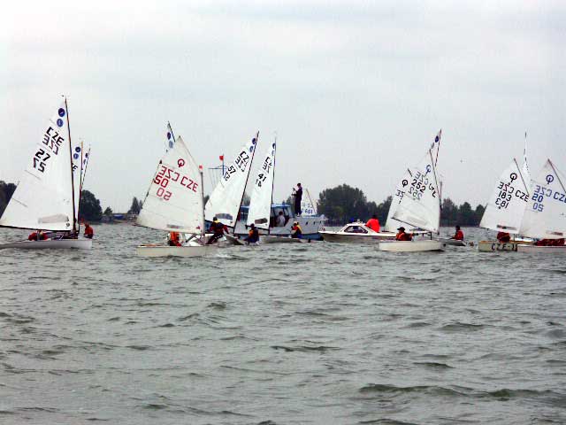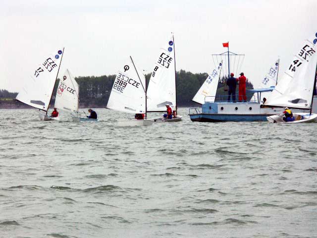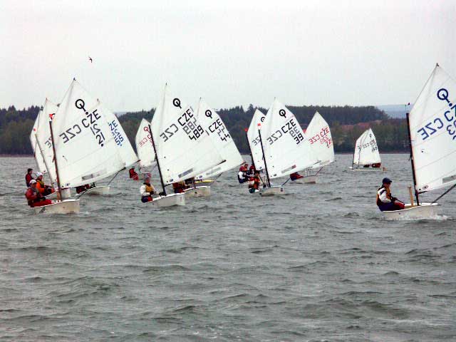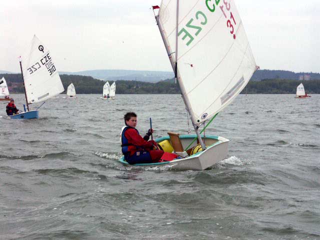 Vodní dílo Rozkoš přivítalo v sobotu ráno závodníky velmi slabým větrem, ve kterém se korouhvička windmetru na střeše klubovny pořádajícího jachetního oddílu jen líně otáčela. Skoro se zdálo, že pohárový závod LT Optimist a Evropa s koeficientem 4 bude problém odjet, tím spíše, že na oba víkendové dny bylo naplánováno celkem dest rozjížděk. Kolem desáté hodiny dopolední začalo hezky pofukovat, byla postavena trať a závod začal. Do večera se podařilo, za solidního větru a občasného zapršení, ujet non-stop pět rozjížděk. Z vody se dostaly poslední lodě až kolem páté odpoledne, což rodiče některých méně zkušených závodníků LT Optimist podrobili vcelku oprávněné kritice.