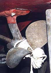 Problém zachycení a následného zamotání lana nebo vlasce do lodního šroubu je také řešitelný a to osazením břitů na vrtulový hřídel. Používá se několik typů břitů – od jednoduchých diskových (obvod disku vytváří hladký nebo zvlněný břit) až po po břity pracující na principu nůžek (jeden břit je pevně spojen s vrtulovým kozlíkem nebo nohou a neotáčí se, druhý rotuje spolu s vrtulí). Nejčastěji se používají výrobky Plastimo, ProProtector, Shaft Knife, Spurs a Stripper. Poslední jmenovaný typ je pravděpodobně nejdokonalejší a chrání šroub nejlépe. Vyrábí jej britská firma Ambassador Marine v mnoha provedeních pro použití na prakticky všech typech motorů a pohonů.