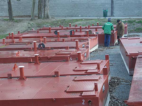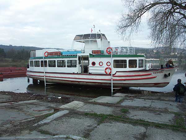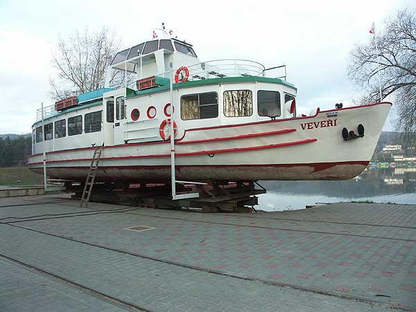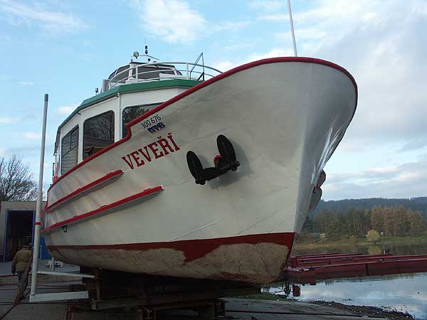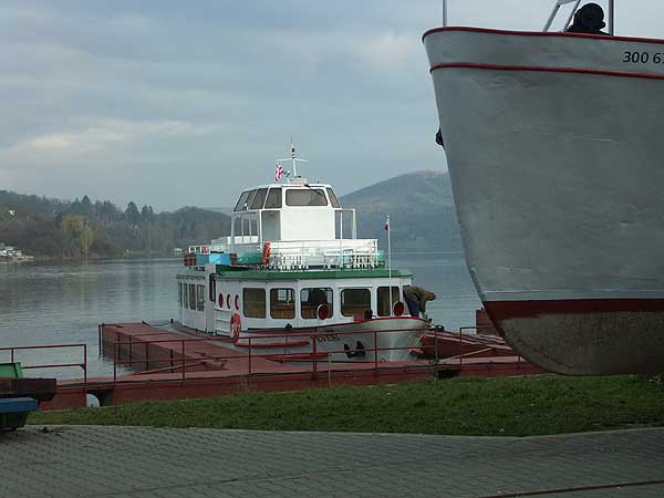 Na přehradu nyní zbývá dopravit a rozmístit pontony a nástupní ostrůvky mol, které všechny svítí též novými nátěry. Zvláštností brněnských parníků jsou velmi plochá dna lodí a ekologický elektrický pohon.