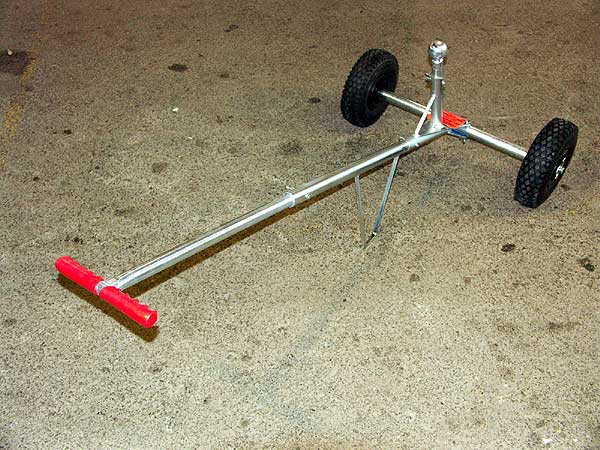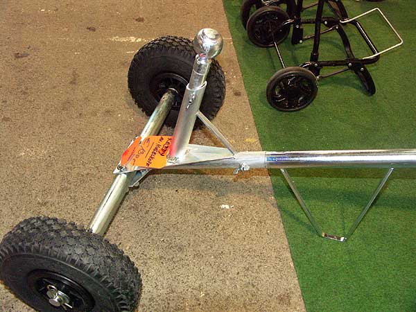 Kdo manipuluje s lodí častěji, což je častý případ v „našlapaných“ loděnicích, ten jistě ocení službu jednoduchého manipulačního podvozku který je zobrazen na ilustračních fotografiích. Takový podvozek se sice dá běžně koupit v mnoho obchodech v Německu nebo Rakousku za cenu okolo 130 euro, ale šikovný kutil zvládne jeho výrobu během dvou hodin a s nákladem mnohonásobně nižším. Základem je kovová trubka o průměru 20 nebo 25 mm (podle průměru náboje použitých koleček) a koule o průměru 50 mm vysoustružená z plného materiálu nebo odřezaná ze starého tažného zařízení. Rozchod koleček je vhodné volit asi 60 cm a délku trubky k madlu asi 150 cm. Místo napojení hřídele kol, trubky madla a trubky s koulí je nutné zpevnit šikmými příčkami ve všech směrech. Kdo chce mít podvozek navíc skladný, může vyrobit jednotlivé díly jako teleskopické.