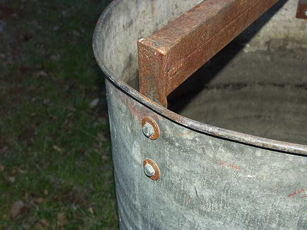 Přesné rozměry držáku si každý upraví podle sudu, který má k dispozici a velikosti podkovy závěsu motoru. V sudu lze bez problémů zkoušet a proplachovat přívěsné motory do výkonu 50 HP. Jak držák vypadá ukazují ilustrační fotografie.