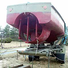 Fotografie v textu ukazují názorně typické tvary trupů určených k výtlačné plavbě, které nemohou nikdy přejít do režimu plavby ve skluzu.