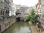 Krátce po sobotním poledni jsme vyrazili po Merwede Kanaalu na první plavbu směr starobylé město Utrecht. Ovládání lodi bylo velmi příjemné díky příďovému manévrovacímu motoru, bylo však nutné si zvyknou na značnou setrvačnost několikatunové lodě a poměrně vysokou rychlost při které loď začíná poslouchat kormidlo. Motor o výkonu 125 HP po zahřátí v nízkých otáčkách spokojeně vrněl a po pár desítkách metrů nás přivítalo ve své komoře první zdymadlo. Usměvavá dívka obsluhující vrata plavební komory si nechala za svoje služby zaplatit do dřeváku zavěšeném na dlouhé tyči a my se podivili faktu, že ač jsme byli jediná loď v dohledu, proplavení proběhlo zcela bez čekání. Těsně za zdymadlem následoval průjezd pod naším prvním holandským zvedacím mostem. Pečlivě jsme se vyvázali u řady vyvazovacích kůlů a připravili se na dlouhé čekání, neboť přes most vedla poměrně rušná silnice. Sotva nás však obsluha mostu uviděla, zastavila červeným světlem na semaforu provoz, stáhla závory a začala most zvedat. Naše vyvázání netrvalo ani tři minuty a loď měla zelenou k průjezdu. Během následujícího týdne jsme každý den projeli pod několika desítkami mostů a plavebními komorami a s výjimkou mostů železničních jsme vždy čekali na průjezd maximálně několik minut. V Holandsku totiž platí, že plavidlo pluje a automobily musí počkat. Nikdo se nerozčiluje, nikdo netroubí, je to zde prostě zcela normální. Od druhého dne jsme se většinou před mosty vůbec navyvazovali a počkali raději stát na motoru. Tento způsob je výhodnější, protože po zvednutí mostu stačí dát plný plyn a pod mostem rychle proletět, aby chodci a řidiči nemuseli čekat zbytečně dlouho. Většinou se ani nečeká na zelené světlo a projíždí se jakmile je most zvednutý do té míry, že se loď pod něj vejde. Všechny větší plavební komory a mosty jsou zdarma, ty menší, vesměs vesnické, se platí vložením mince do dřeváku. Je vhodné mít v zásobě dostatek jednoeurových mincí, protože zpět se nevrací. Plavbu prvního dne jsme zakončili vyvázáním na okraji Utrechtu v městském parku a vydali se pěšky na prohlídku města.