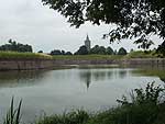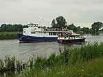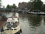 Kanál je neustále lemován úzkou silničkou a tak na chvíli přirážíme ke břehu, sundáváme z paluby kola a několik kilometrů jedeme souběžně s lodí plující se zbytkem posádky. Občas mineme jachtklub a využíváme příležitosti k fotografování a filmování naší lodi plující pár desítek metrů od naší cyklostezky. Projíždíme hezoučkým městečkem Weesp a před polednem připlouváme do Muiden. Vyvazujeme loď pod mostem, přes který vede dálnice do Amsterdamu, sundáváme kola a vydáváme se na cyklovýlet do Naardenu vzdáleného asi šest kilometrů. Naarden je překrásné opevněné město s půdorysem šesticípé hvězdy a jeho jádro tvoří pevnost (trochu připomínající svými zdmi Terezín) obehnaná širokým vodním kanálem. Navštěvujeme muzeum, renesanční radnici a gotický kostel Grote St. Vituskerk. Zlatým hřebem výletu je, jak jinak, návšteva mauzolea Jana Amose Komenského. Zrovna v době naší návštěvy se na české politické scéně diskutuje financování jeho provozu, což nám připadá trapné. Cestou k lodi si v Muidenu v rychlosti prohlížíme uzavřenou věž Muiderslot, nasedáme na loď a chystáme se na cestu do Amsterdamu. Máme dvě možnosti. Buďto přeplavit IJ-meer nebo se vrátit a po kanálu Muider-trekvaart projet na široký Amsterdam Rijn Kanaal. Volíme druhou možnost, protože na několikakilometrovou plavbu po otevřené vodní ploše bez navigačních pomůcek si netroufáme. Vjezd do odbočky na Muider-trekvaart ale blokuje jiná loď a nám se nechce čekat. Proto se vracíme několik kilometrů zpět a na Amsterdam Rijn Kanaal najíždíme jižněji, než jsme plánovali. Cesta širokým dopravním kanálem je sice rychlá, jedeme kolem 20 km/hod, ale zcela nezajímavá. Kanál je široký několik desítek metrů, jsou na něm mohutné vlny a jeho břehy jsou vysoké, takže není na co koukat.
