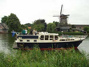 Ráno se nám nechce opouštět útulné kajuty jen mírně se pohupující lodi. Snídáme až kolem osmé hodiny a probíráme událost ze předchozího dne, o které jsem se minule nezmínil. Při projíždění kanálu spojujícího Vecht a jezero Loosdrechtse Plassen jsme totiž zažili nepříjemnou událost. Kapitán (neprozradím, který z nás to byl) se více kochal malebným okolím než řízení lodě a nevšiml si, že břeh před námi vytváří zub ohraničený masívními ocelovými profily. V tu chvíli jsme loď brzdili zpětným chodem na plný plyn, třením o větve stromu, který se skláněl nad kanálem a především pořádným strachem, že se několikatunová řádně rozjetá loď nezastaví včas. Zastavila se. Mezi ocelí přídě a ocelí vetknuté do dna kanálu zbývalo sotva třicet centimetrů. Kapitán sice hrdinně dělal, že nic, že má všechno pod kontrolou, ale všichni jsme věděli, že měl v tu chvíli srdce hodně nízko.