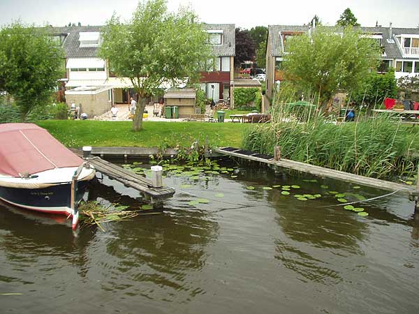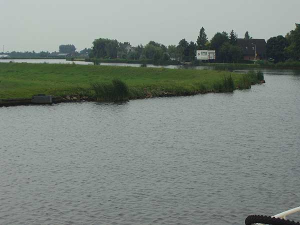 Krajina kolem je dokonale holandská. Hladina kanálu je několik metrů nad okolním terénem, takže z okolních domů vidíme mnohde jen střechy. Že trasa kanálu křižuje silnici tak, že vede nad ní, nás už nemůže překvapit. Několik kilometrů severně od městečka Alphen aan de Rijn uhýbá z kanálu odbočka vpravo. Na mapách je značena žlutou barvou, což znamená, že vplutí je povoleno pouze po zaplacení speciálního poplatku, vyplnění registračního formuláře a vylepení samolepky na kajutu. Rádi obětujeme pět euro, protože nám to umožní opustit přeci jen trochu nudný Amstel, nepokračovat po Aarkanaalu a přes Drecht se proplavit na jezero Braassemermeer, kde je dobrá možnost přenocovat na dobře vybaveném kotvišti. Kotvíme loď u dlouhého dřevěného mola, neboť místa vedle trávníku jsou již obsazena, opouštíme loď a jdeme se projít po okolí. Den končíme bohatou večeří, teplou sprchou a nakonec zalézáme do spacáků v kajutách.