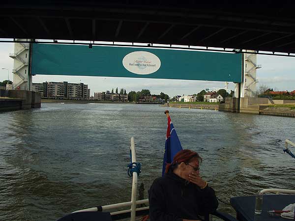 Původně jsme měli v plánu z Goudy plout zpět do Nieuwegeinu, ale blízkost Rotterdamu nás přiměla změnit operativně plán. Trochu ve spěchu a neradi se s hezkým starobylým městečkem loučíme a širokým kanálem spěcháme k moři. Cesta z Goudy do Rotterdamu je sice rychlá, plujeme na plný plyn, ale tento úsek cesty není ničím zajímavý. Vodní cesta je zde hojně využívána velkými nákladními loděmi, je potřeba pečlivě sledovat plavební dráhu, množství plavebních znaků a bójí. V podvečer připlouváme těsně před Rotterdam.