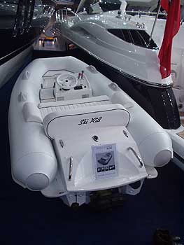 Na londýnském veletrhu nás zaujal nafukovací RIBs, který byl konstruován speciálně pro takové použití. Na trh ho dodává firma Williams Marine Ltd. a je vhodný zejména pro jachty Fairline Targa 43/48/52, Fairline Phantom 40/43/46/50, Princess V46/V50/45/50, Sunseeker Portofino 46/53 a Sunseeker Camargue 50, Manhattan 50 a Predator 61.