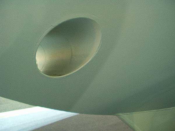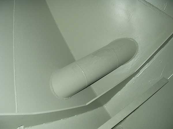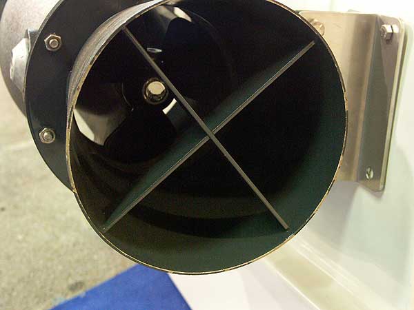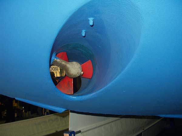 Příďový manévrovací motor je uložen v kruhové rouře zabudované napříč lodi v její přídi. Názorně je to patrné na horních třech fotografiích, které zobrazují pohled na prázdnou rouru při pohledu zevnitř lodi, zvenku lodi a na rouru už osazenou manévrovacím motorem.