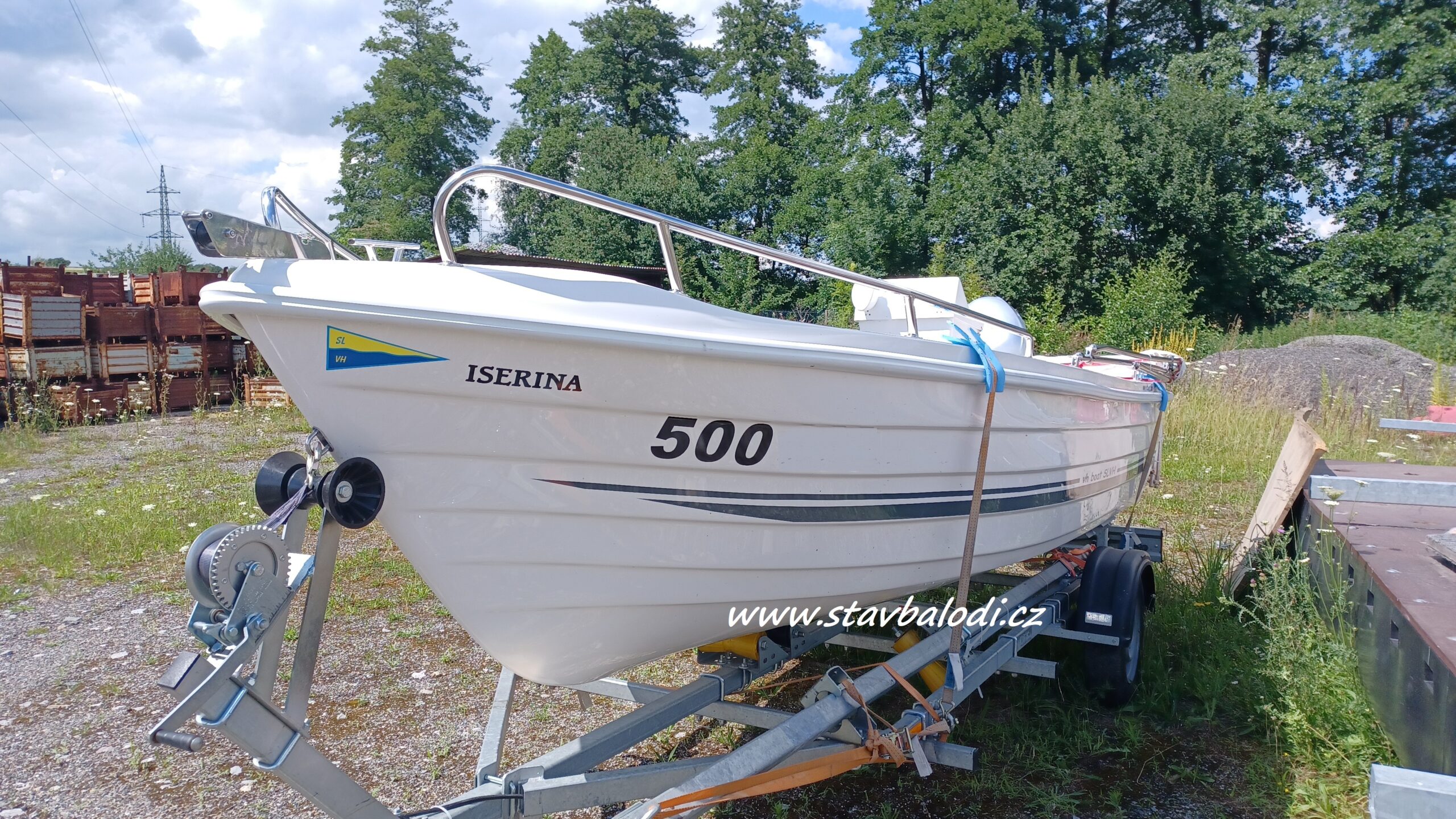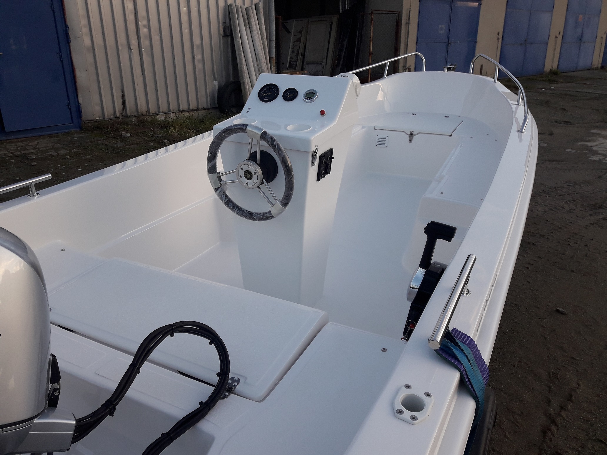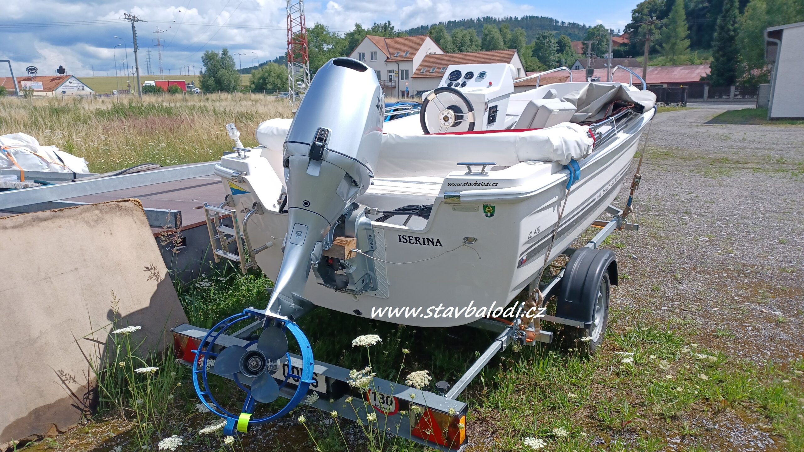 Člun je vybaven dálkovým ovládáním, elektroinstalací, baterie, palivová nádrž,