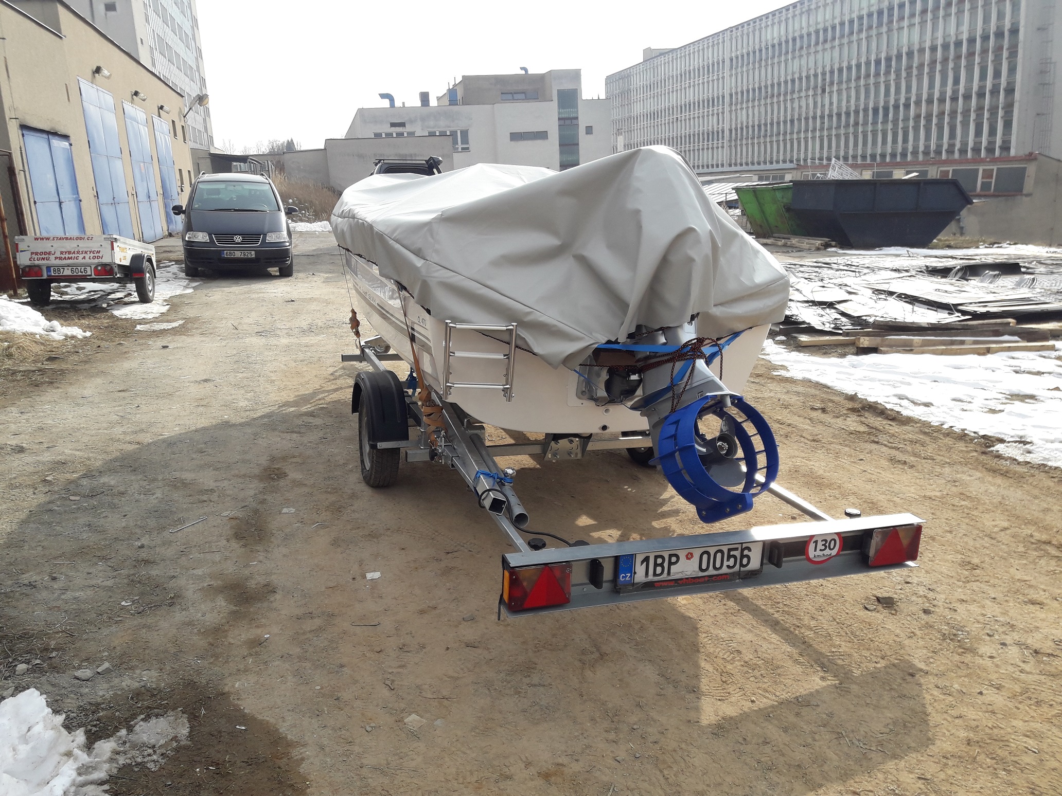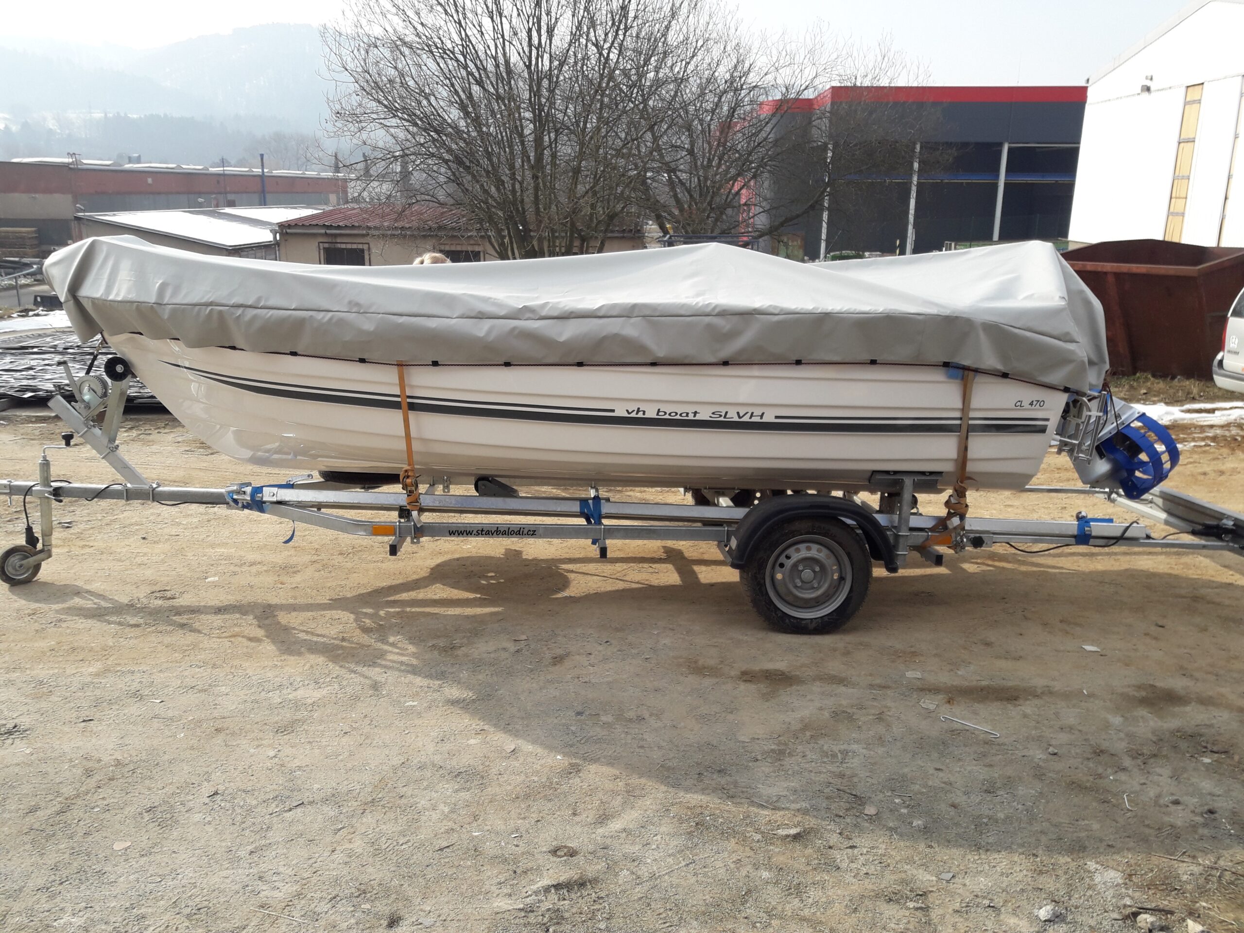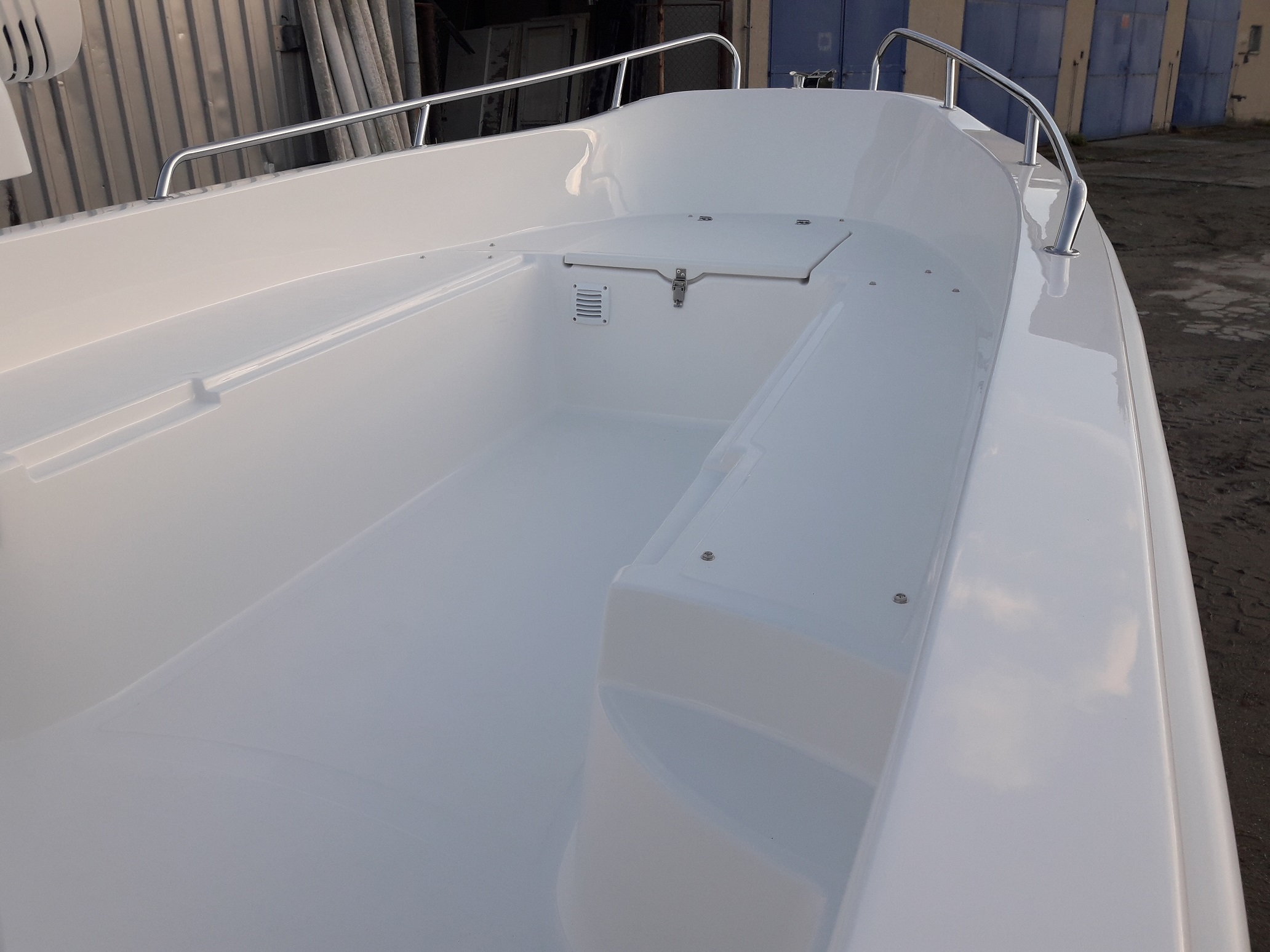 Člun je vybaven dálkovým ovládáním, elektroinstalací, baterie, palivová nádrž,