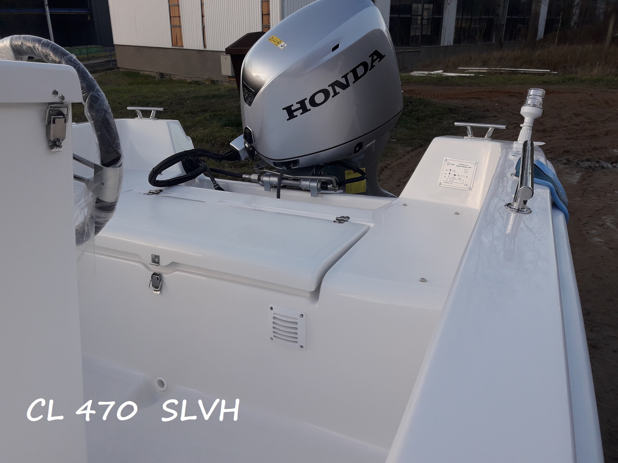 Nabízím nový, málo používaný člun CL 470 Open s motorem Honda 50 Hp - 15 motohodin v záruce ještě před "garančkou" s el. trimem.