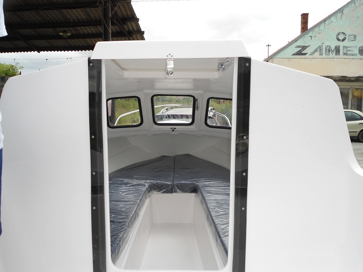 Standardní výbava: bílá barva, okna v gum. těsnění, otevíratelné středové okno, dveře do kajuty, 3x kotvící oka, 3x vazáky, odrazová guma kolem lodi. Cena člunu bez motoru 184 500,- Kč