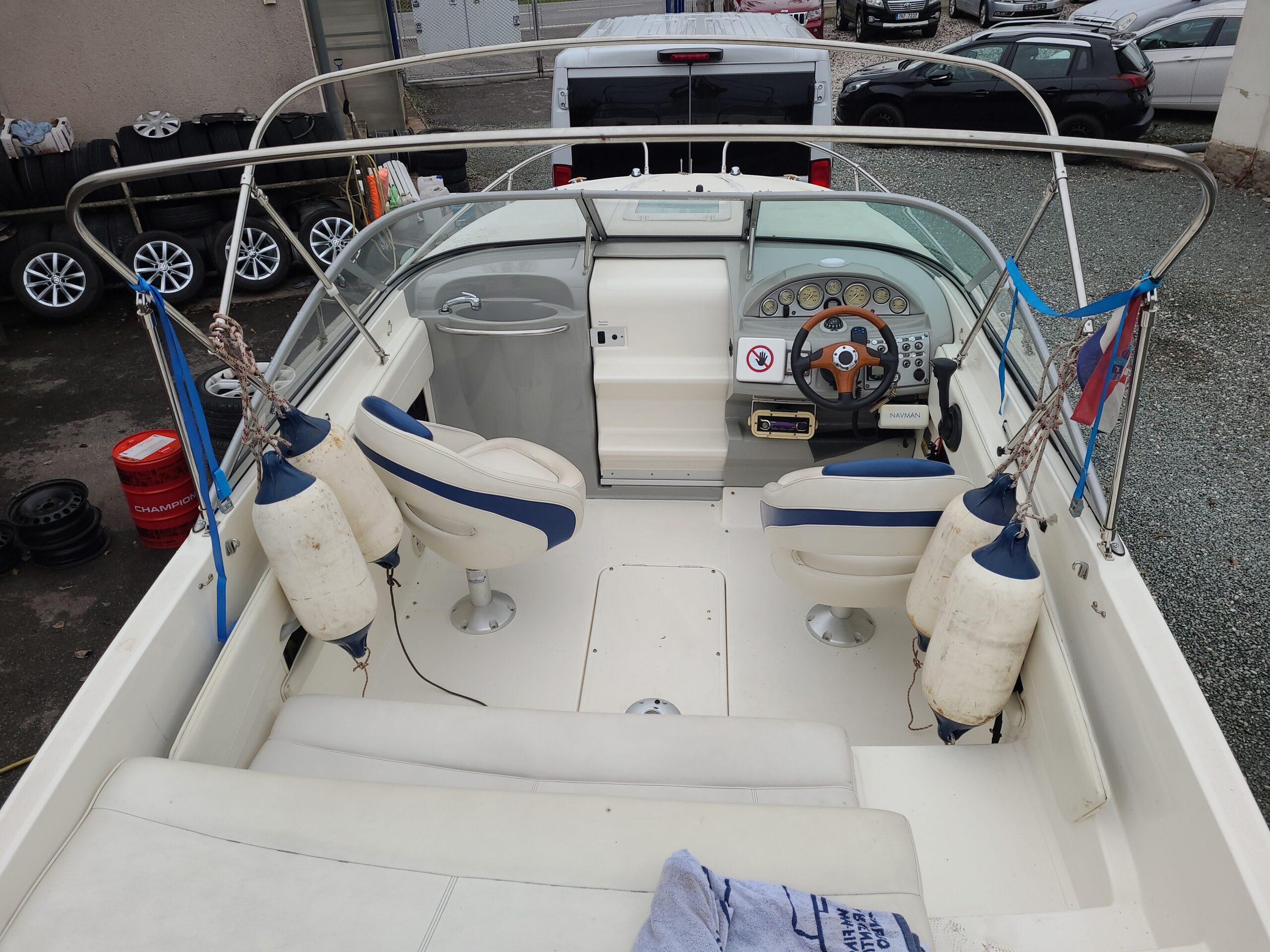 Prodám Bayliner 652 4,3 MPI Mercruiser 220 PS, r.v. 2005, provoz 2006, , délka 6,22m šířka 2,44m. koupací plato vzadu, bimini + kompletní kočárek, zakrývací plachta, záďová sprcha, umyvadlo, GPS + sonar, kotva, el. toaleta, el. břehová přípojka + nabíječka, automatické trimovací klapky, naftové topení,držák přídavného motoru, zapsané tažení lyžaře, 8 míst, cena 499000 Kč, přívěs 2,3t.Možnost kotvení na vodní nádrži Rozkoš, tel 603 477 190