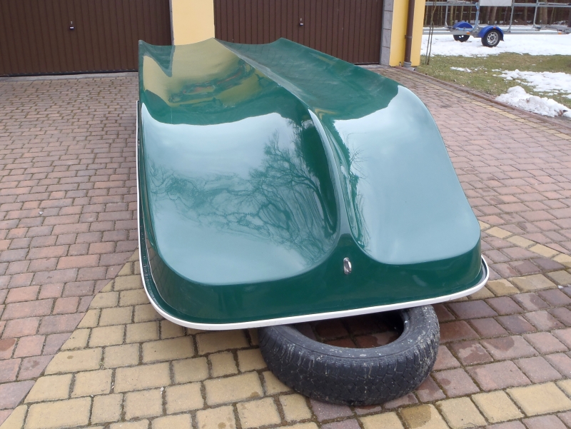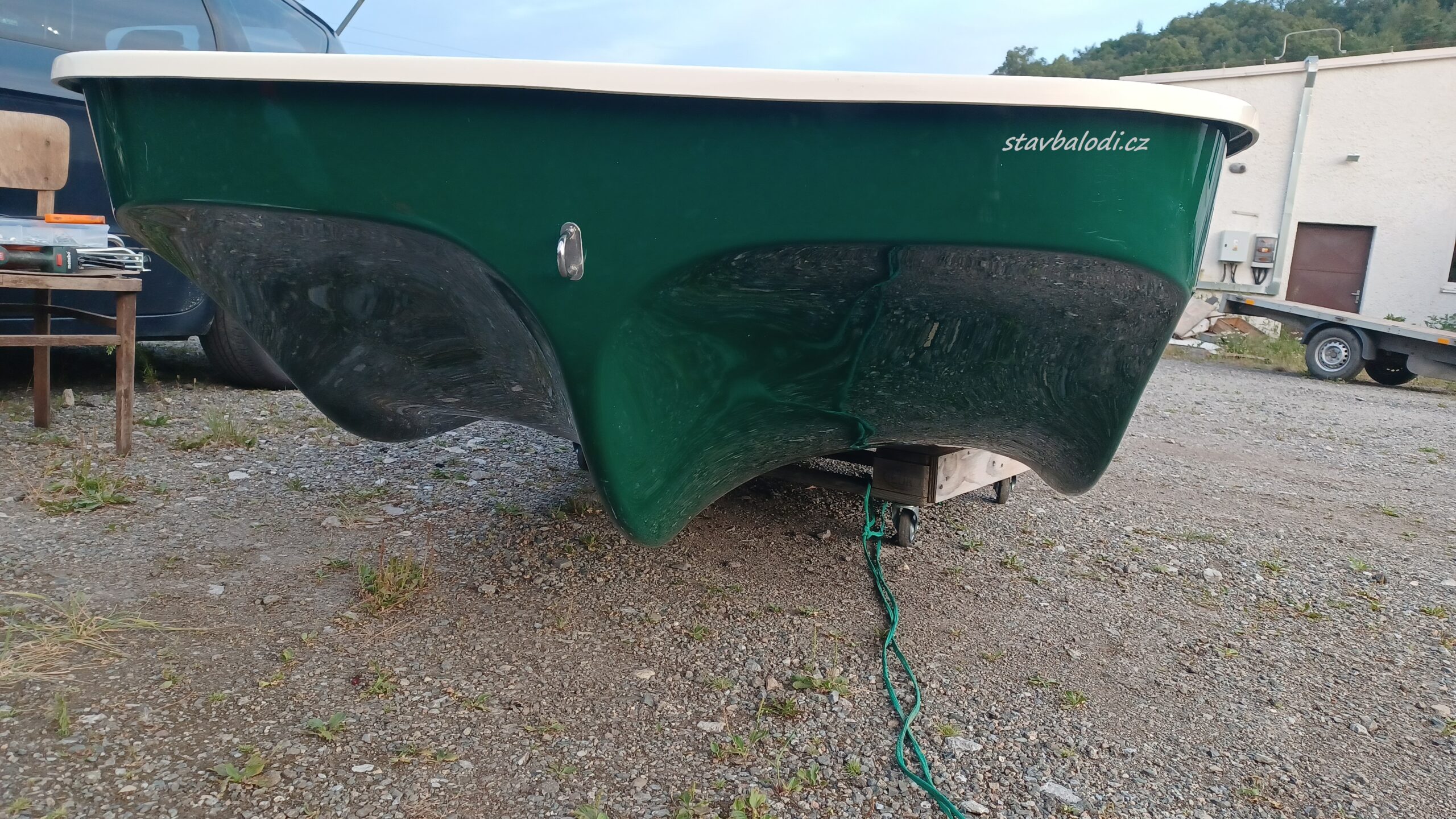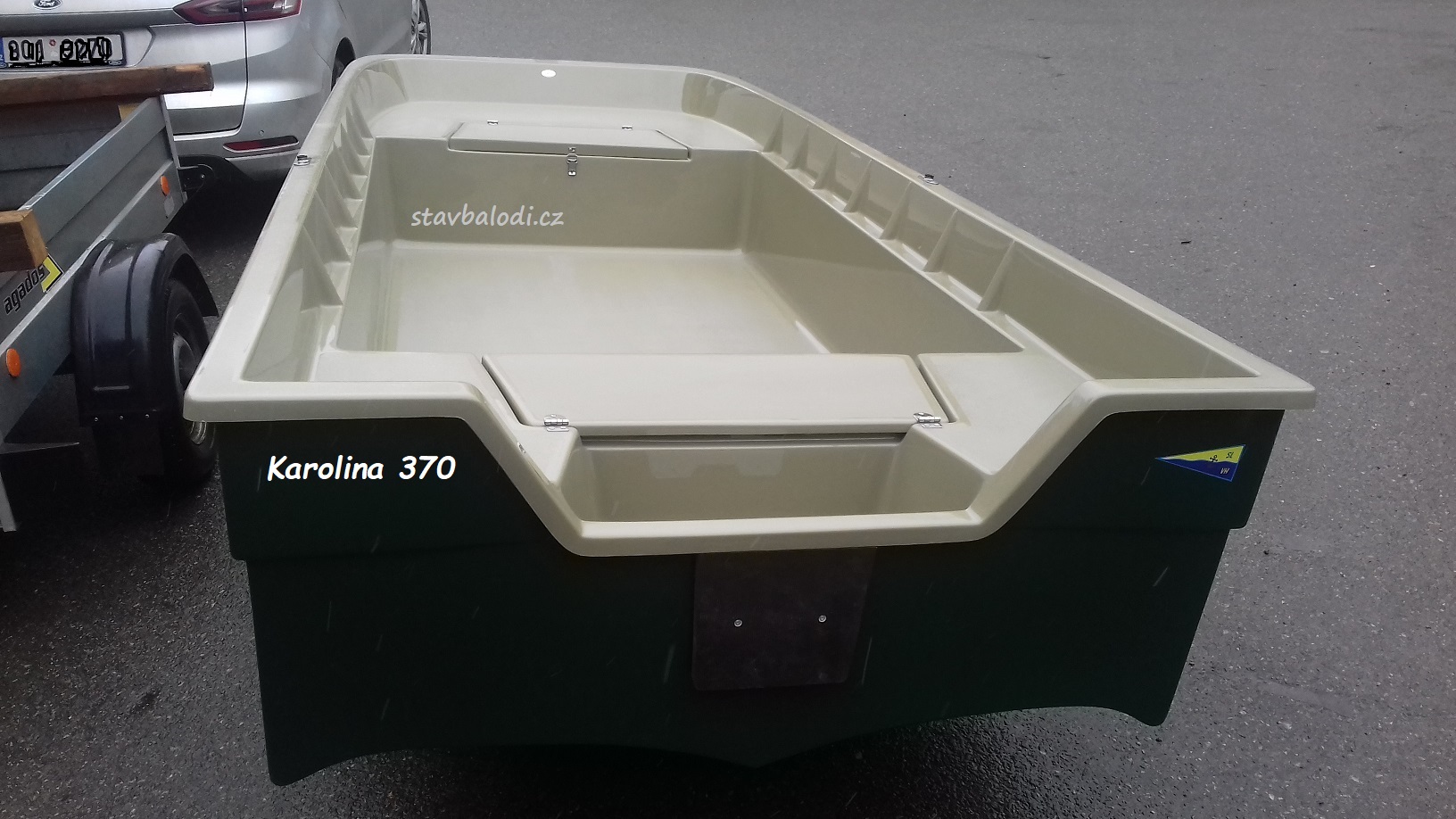 Prostorný člun se širokým trimaránovým trupem, který zajišťuje vysokou stabilitu. Člun je laminátový, nový, dvouplášťový, je vybaven dvěma uzamykatelnými schránkami pro uložení věcí, přestavitelnou lavičkou a je možné jej používat s různými typy pohonu závěsným motorem (spalovacím nebo elektromotorem) nebo vesly. Kování je z nere-zové oceli (úchyty pro vesla, panty, oko na přídi). Člun je stabilní a ideální pro lov sumců nebo rodinné výlety.