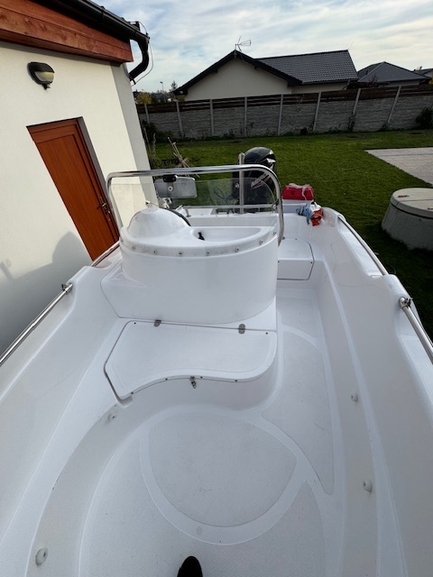 Od výroby je vybaven originální tahací tyčí pro lyžování, wakeboard apod. Člun má odvodňovací systém, kokpit s volantem vč. veškeré elektroinstalace, kožené sedačky, bílé 360st. světlo, navigační světla, žebřík na zádi pro lepší vstup z vody na člun, autozapalovač, baterie/12V-56Ah včetně boxu, vypouklé zpětné zrcátko s nastavitelným krkem, sundeck na přední části, biminy 3-ramene 150 cm, 2 nádrže na benzin, 22 L + 30 L.