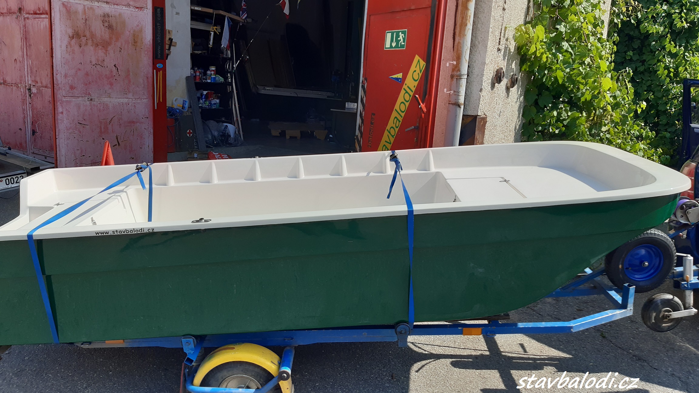 Prostorný člun se širokým trimaránovým trupem, který zajišťuje vysokou stabilitu. Člun je laminátový, nový, dvouplášťový, je vybaven dvěma uzamykatelnými schránkami pro uložení věcí, přestavitelnou lavičkou a je možné jej používat s různými typy pohonu – závěsným motorem (spalovacím nebo elektromotorem) nebo vesly. Kování je z nere-zové oceli (úchyty pro vesla, panty, oko na přídi). Člun je stabilní a ideální pro lov sumců nebo rodinné výlety.