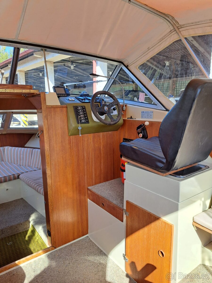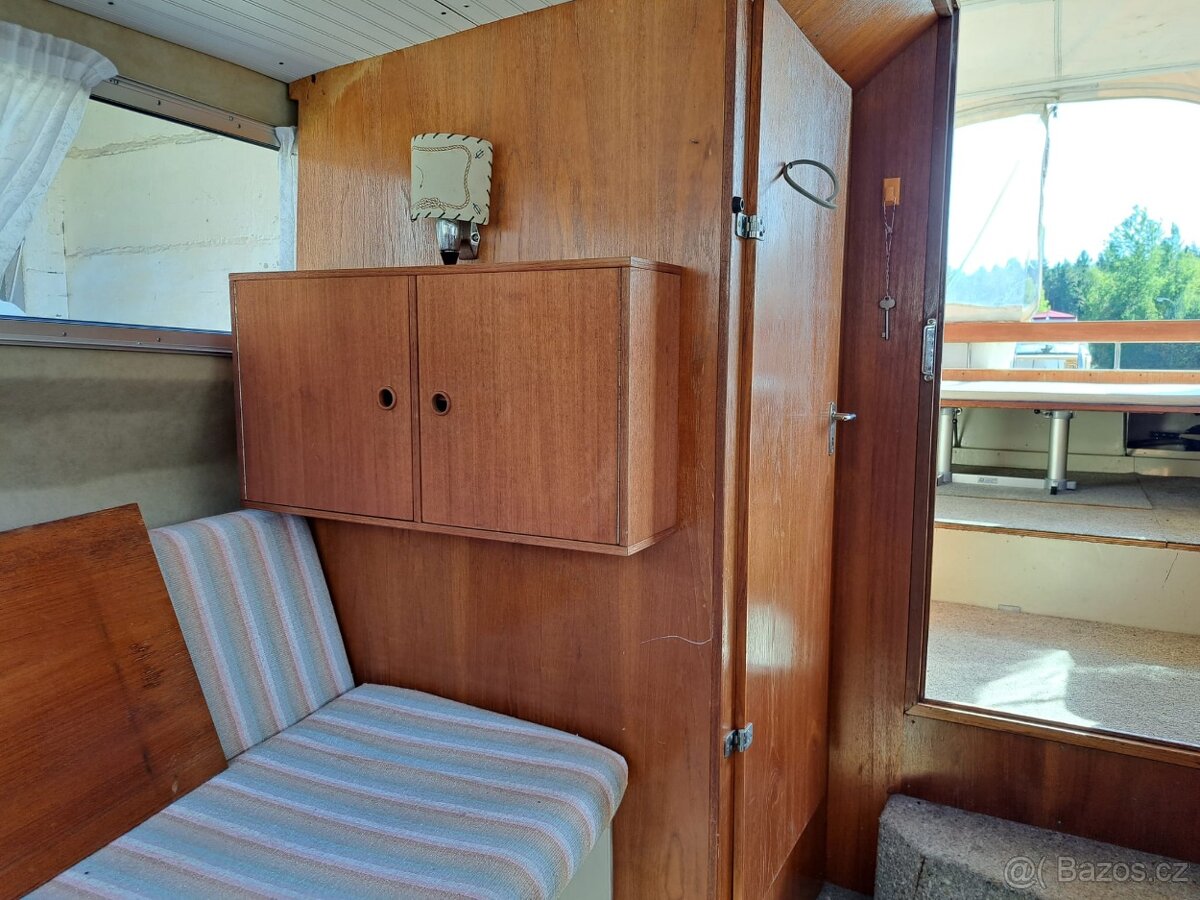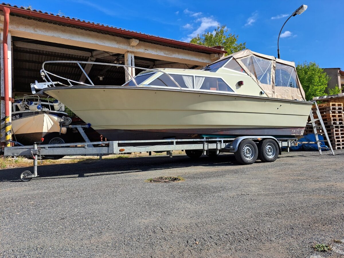 Popis: zachovalá kajutová motorová loď, délka 7,40m šířka 2,80m. Motor Volvo Penta 160Hp. 8 osob,lednice, tekoucí voda, fekální nádrž. Česká technická, původ Švýcarsko. Vlek není součástí prodeje. V ČR nebyla tato loď na vodě, je uskladněna v areálu v Rožmitále pod Třemšínem. Cena 120 000,- Kč