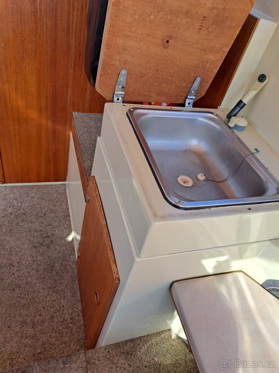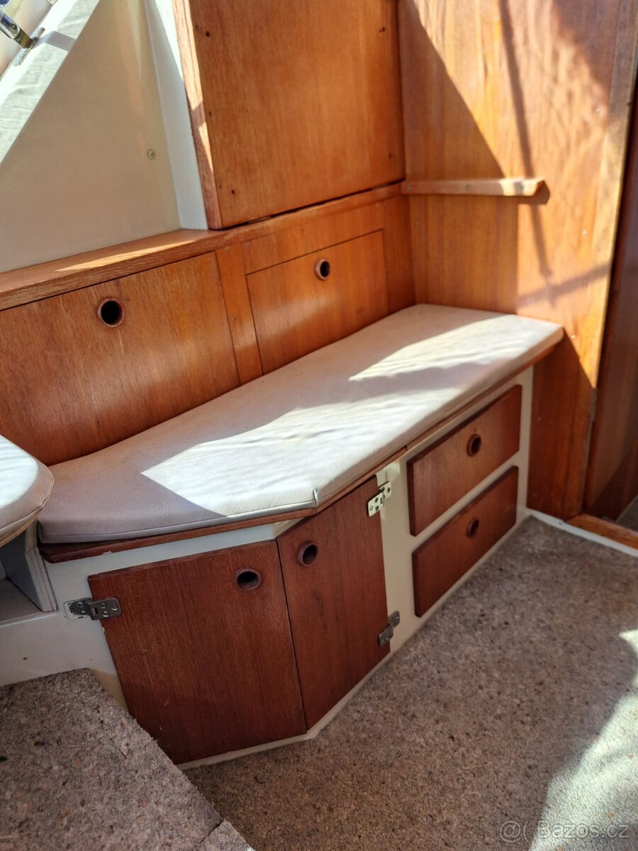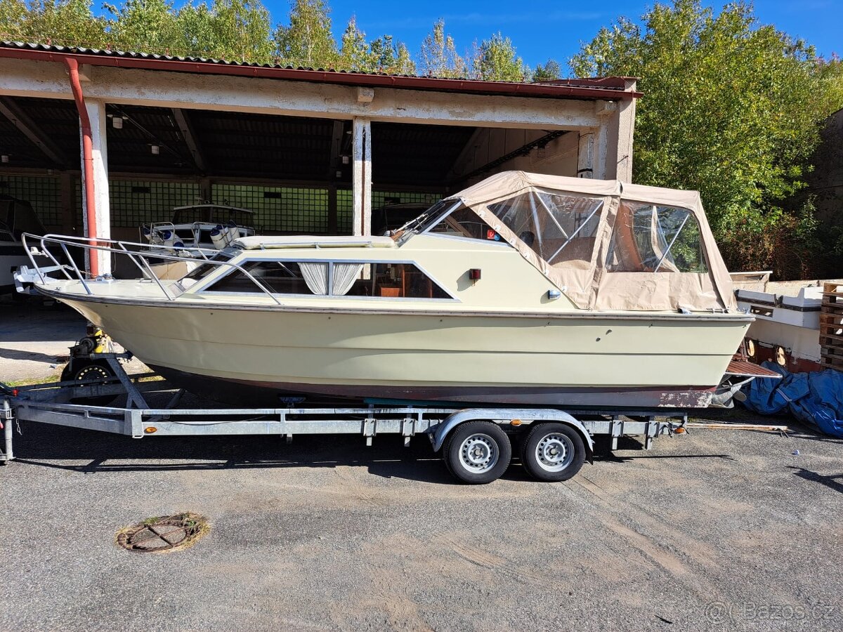 Popis: zachovalá kajutová motorová loď, délka 7,40m šířka 2,80m. Motor Volvo Penta 160Hp. 8 osob,lednice, tekoucí voda, fekální nádrž. Česká technická, původ Švýcarsko. Vlek není součástí prodeje. V ČR nebyla tato loď na vodě, je uskladněna v areálu v Rožmitále pod Třemšínem. Cena 120 000,- Kč