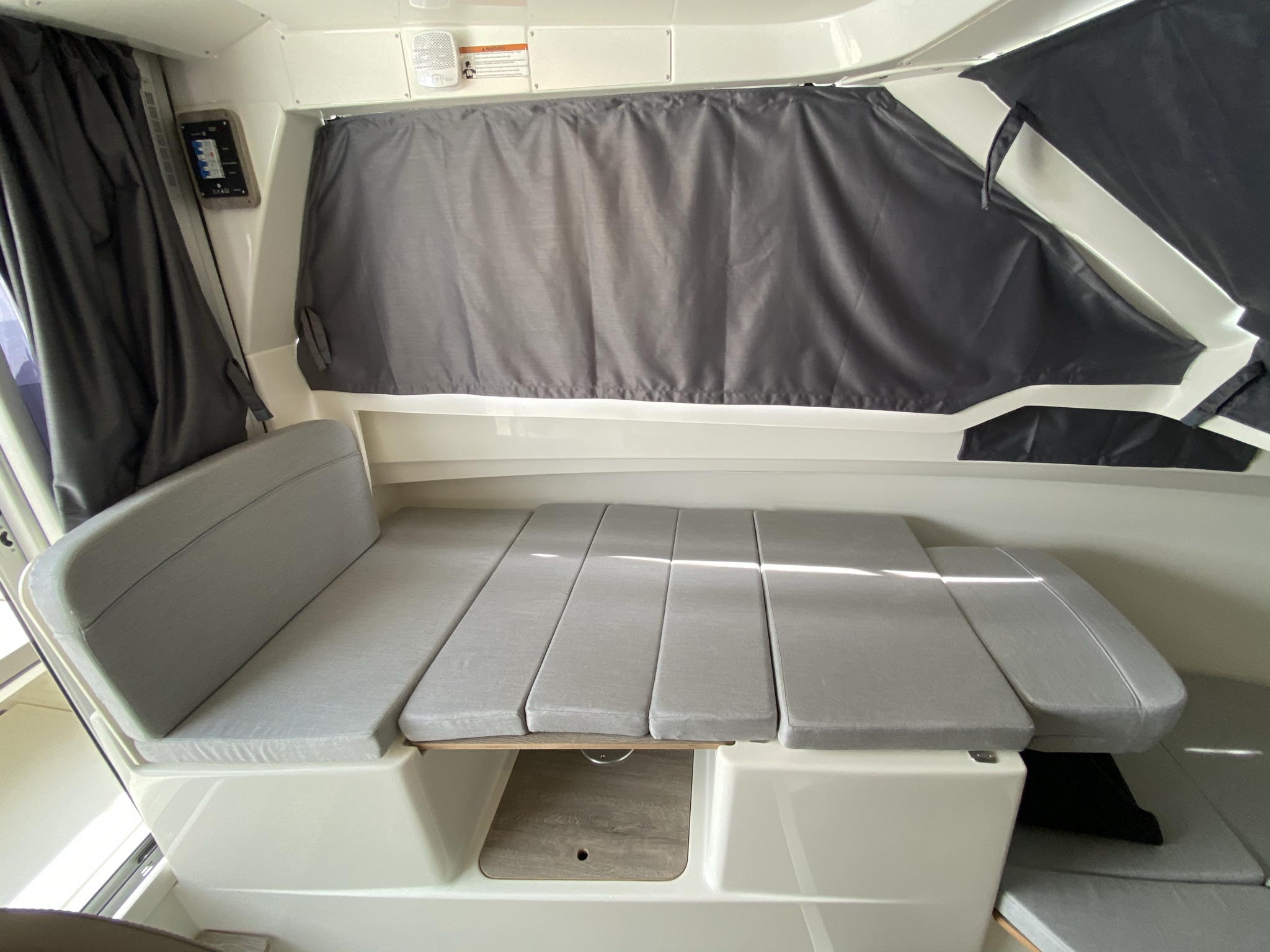 - SMART PACK (Elektrický vrátek kotva, střešní okno, ležení v kokpitu, teakový stolek, záclonky, lednice 51L, osvětlení z hardtopu, mooring kit)