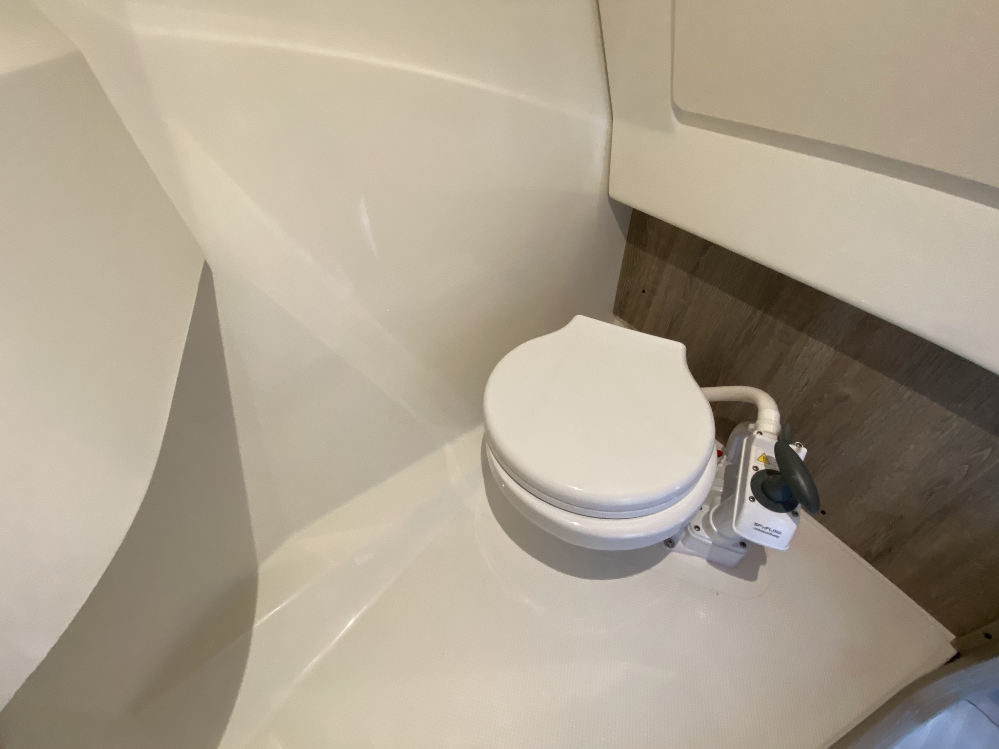 - Uzavřená mořská toaleta s umyvadlem s macelátorem a odpadní nádrží