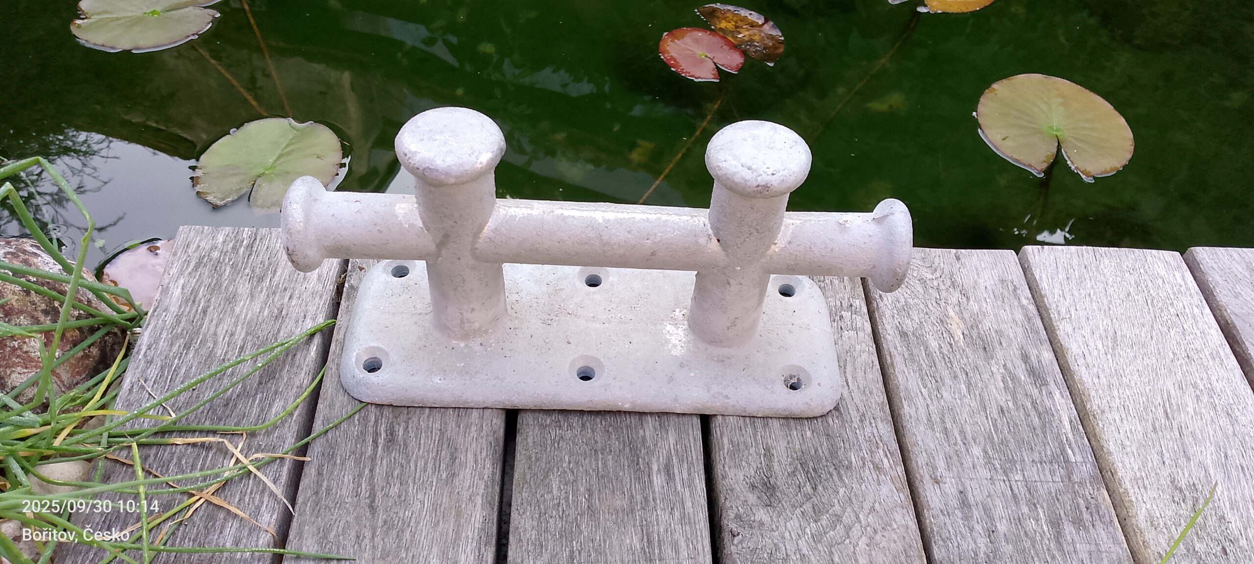 Litinové pozinkované robustní pachole na vyvázání lodí k molu. Cena 890,-