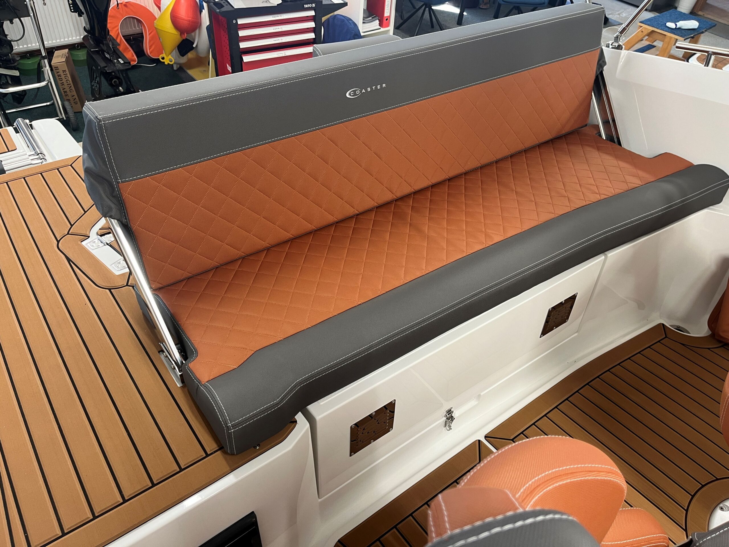 Prostorná kajuta-místa pro 2dospělé a 2 děti. Za otočnými křesly řidiče a spolujezdce se nachází dlouhá pohovka-lze využít na sezení po směru jízdy a po překlopení vznikne zadní opalovací plocha.Prostor kokpitu lze zastřešit kompletním cabriem s odepínacími boky.