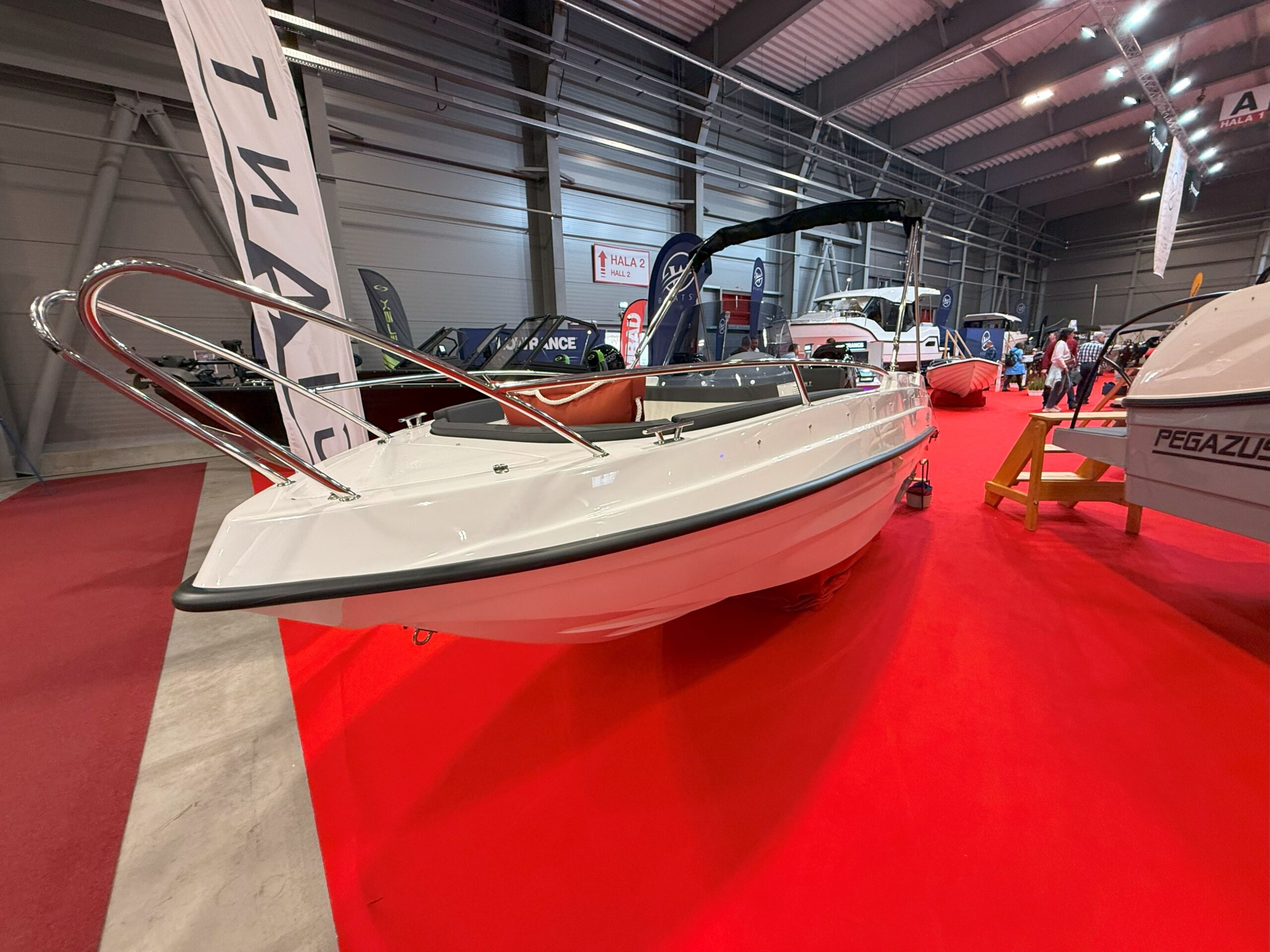 Člun Giant 475 Sport z loděnice Giant Boats by Szymanski, který pracuje s motorem až 70 HP.