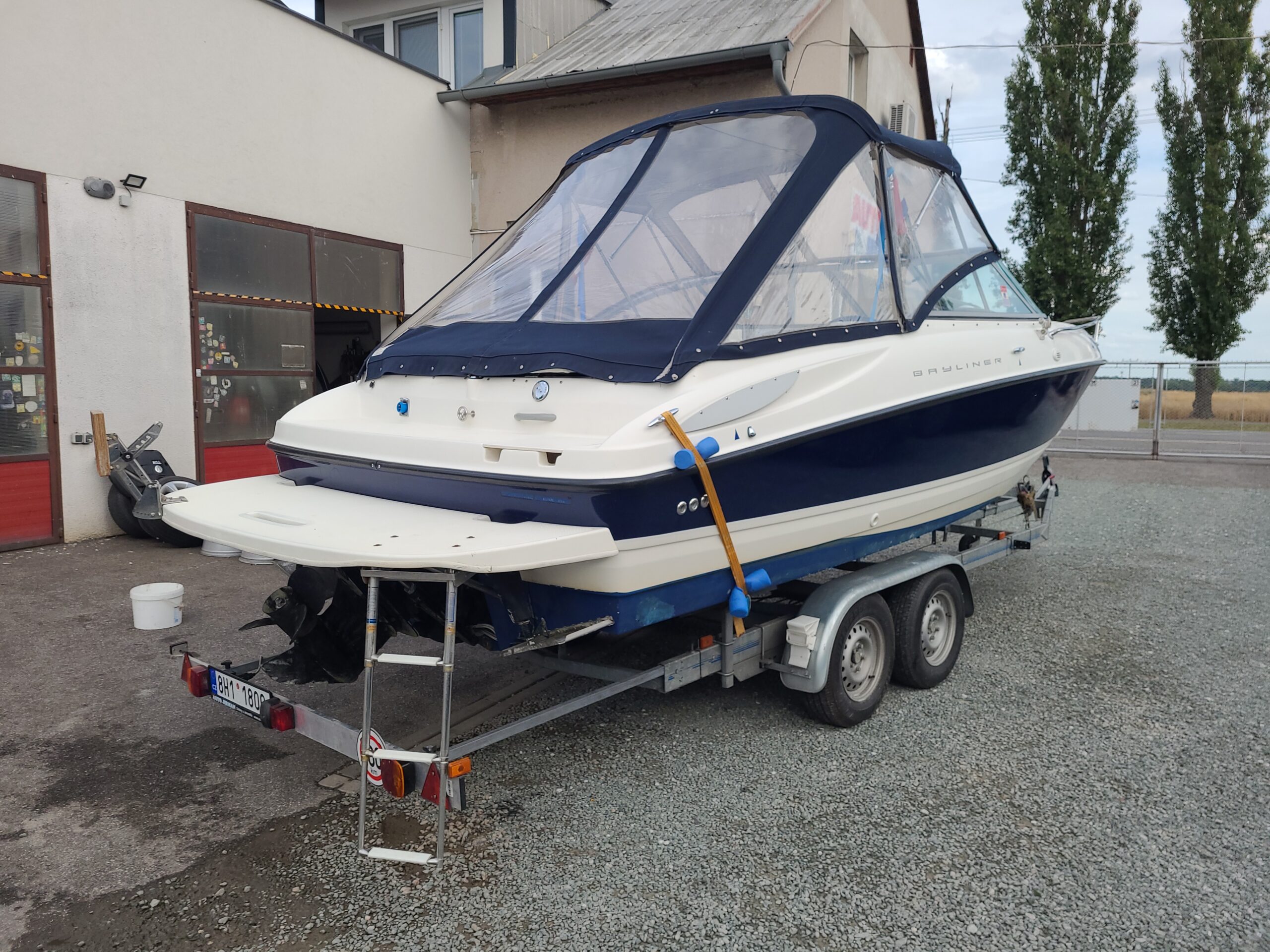 Prodám Bayliner 652 4,3 MPI Mercruiser 220 PS, r.v. 2005, provoz 2006, , délka 6,22m šířka 2,44m. koupací plato vzadu, bimini + kompletní kočárek, zakrývací plachta, záďová sprcha, umyvadlo, GPS + sonar, kotva, el. toaleta, el. břehová přípojka + nabíječka, automatické trimovací klapky, naftové topení,držák přídavného motoru, zapsané tažení lyžaře, 8 míst, cena 499000 Kč, přívěs 2,3t.Možnost kotvení na vodní nádrži Rozkoš, tel 603 477 190