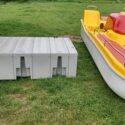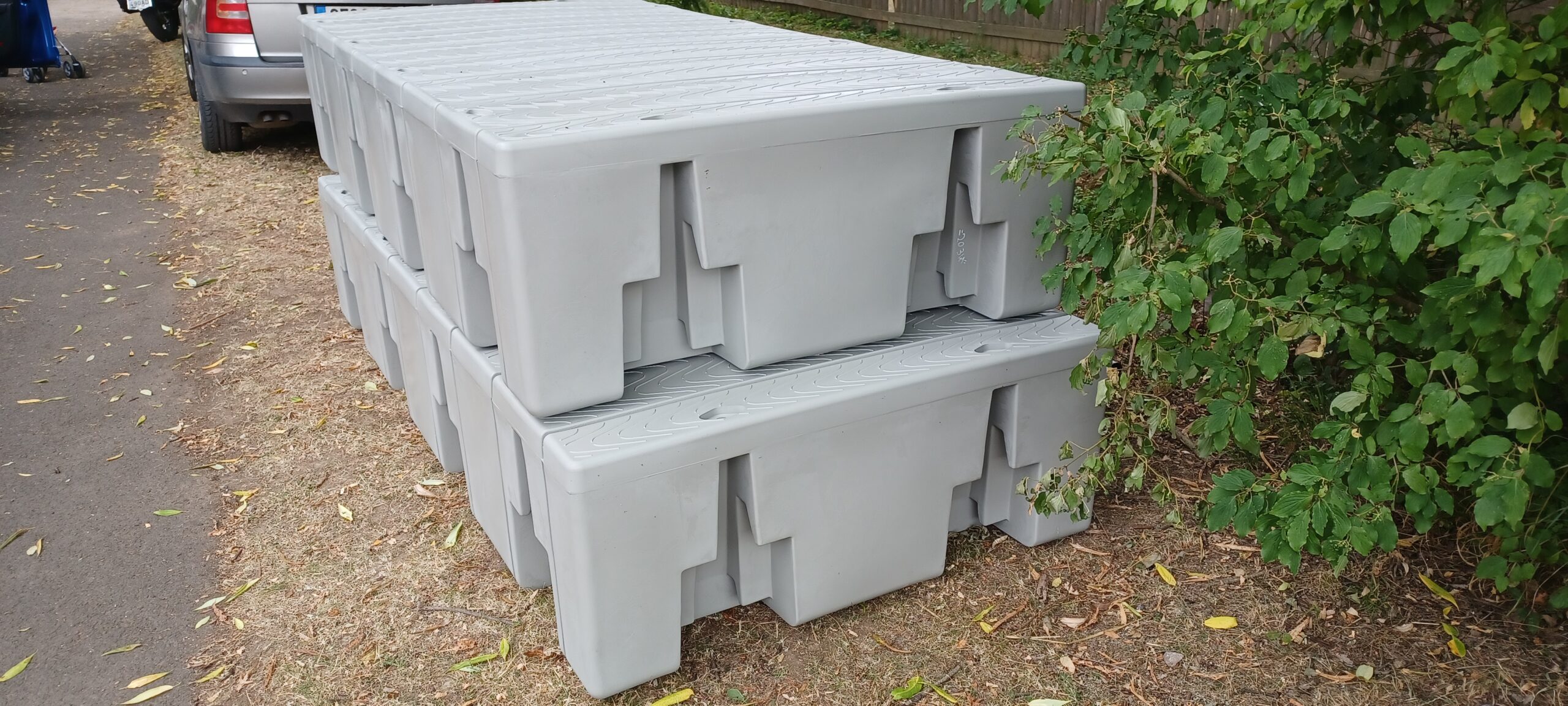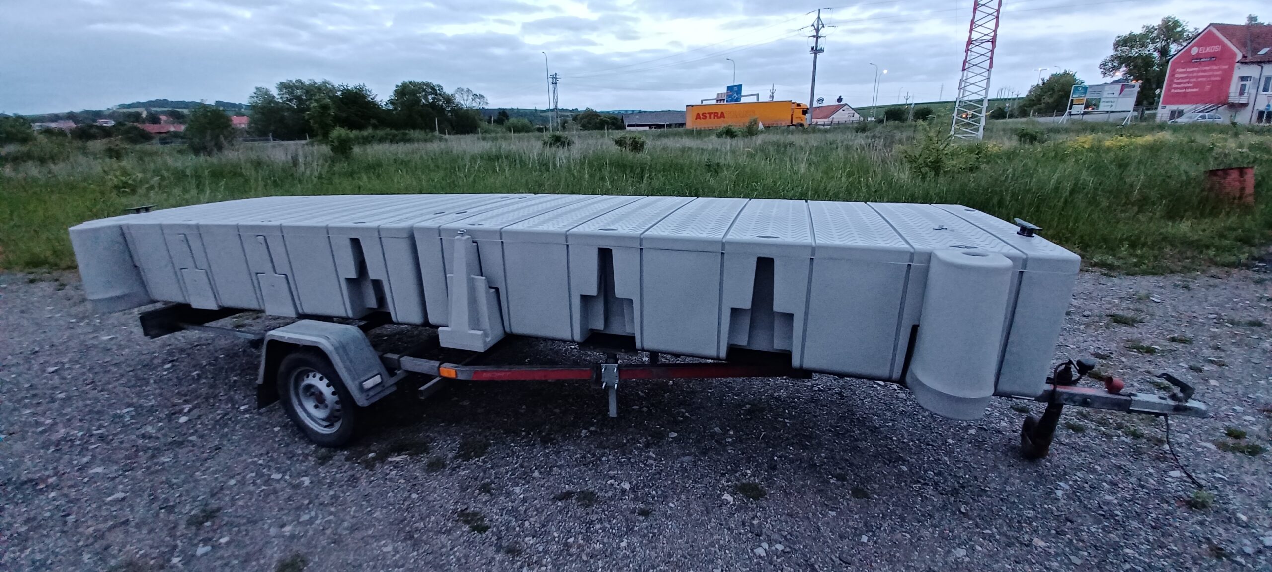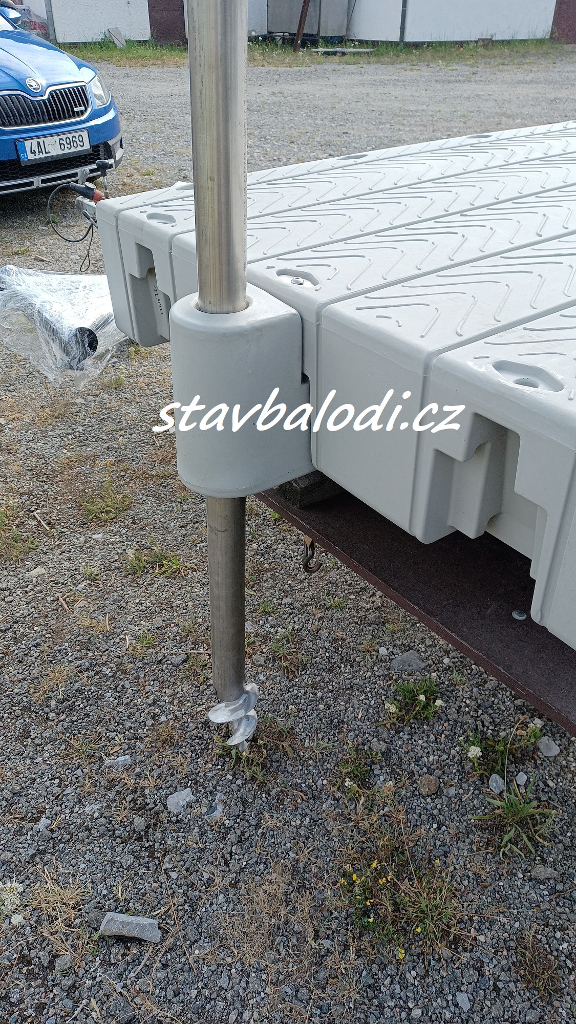Plováky pro stavbu plovoucího přístavního mola M 50 Plováky jsou nové, vyrobeny z odolného plastu – polyetylenu, který je odolný nárazu, mrazu, UV záření je bezúdržbový nejsou potřebné pravidelné nátěry. Pochozí povrch je protiskluzový. Sestavení mola je snadné a rychlé v různých tvarech a velikostí. Roste dle potřeby rozšíření anebo zátěže. Délka 246cm, šířka 123 cm, výška 50 cm, plocha 3 m2, váha plováku 90,1 kg, zatížení 1 139 kg, 380 kg na m2 cena plováku 18 900,-Kč 6 300,- za m2