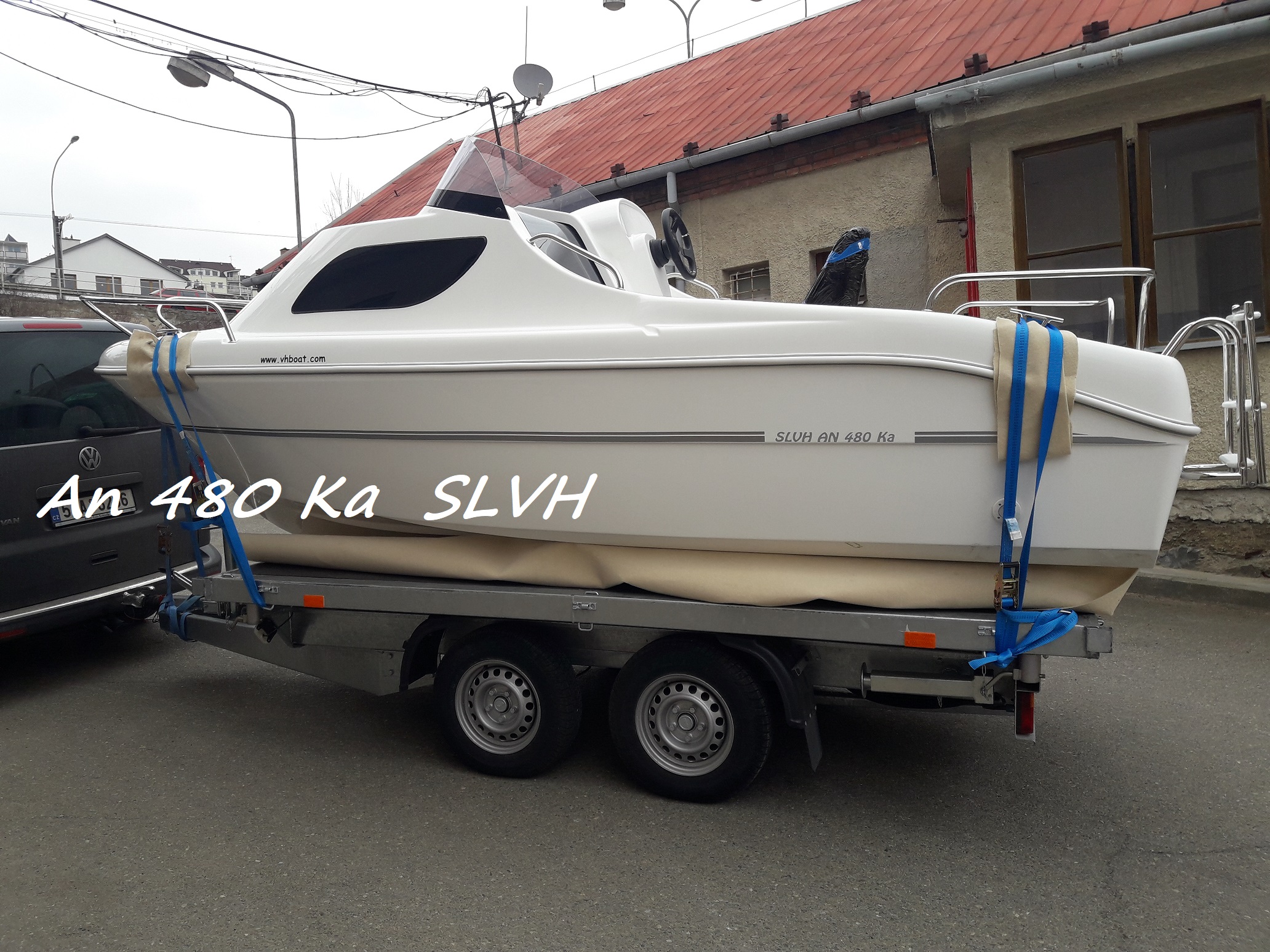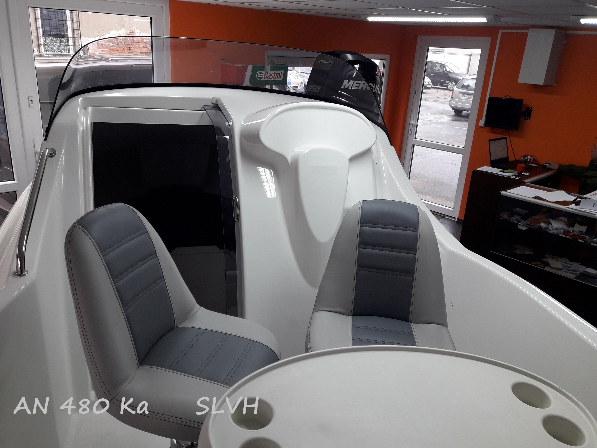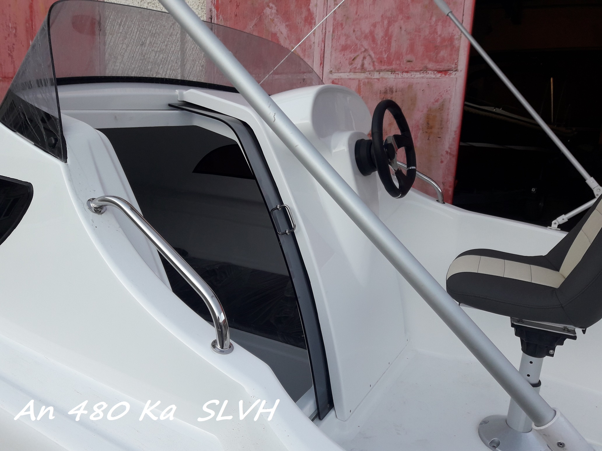 Motorový kajutový člun AN 480 Ka pro sport, rekreaci i rybolov, pro 5 osob. Člun je nový určen pro vnitrozemské vody i mořskou pobřežní plavbu. V prostorné kajutě se vyspí 3 dospělé osoby. Dveře do kajuty se zasouvají, takže při otevření nezavazí. Délka 480 cm, š – 210 cm, váha – 430 kg, 5 osob, kat. C, motor max. – 60 Hp L. Standardní výbava: bílá barva, plexi štít, kladka na kotvu, schránka na kotvu a lano, 3 bakisty v kabině a 3 v kokpitu, reling na přídi a na zádi, 4 vazáky, 2 x odtok vody z kokpitu, kapitánské křeslo, žebřík do vody, polstrování v kajutě a v kokpitu, odrazová guma kolem lodi, řízení TELEFLEX - volant, převodovka, bovden. Cena člunu bez motoru 185.000,-Kč. Nyní k odebrání v bílé barvě.
