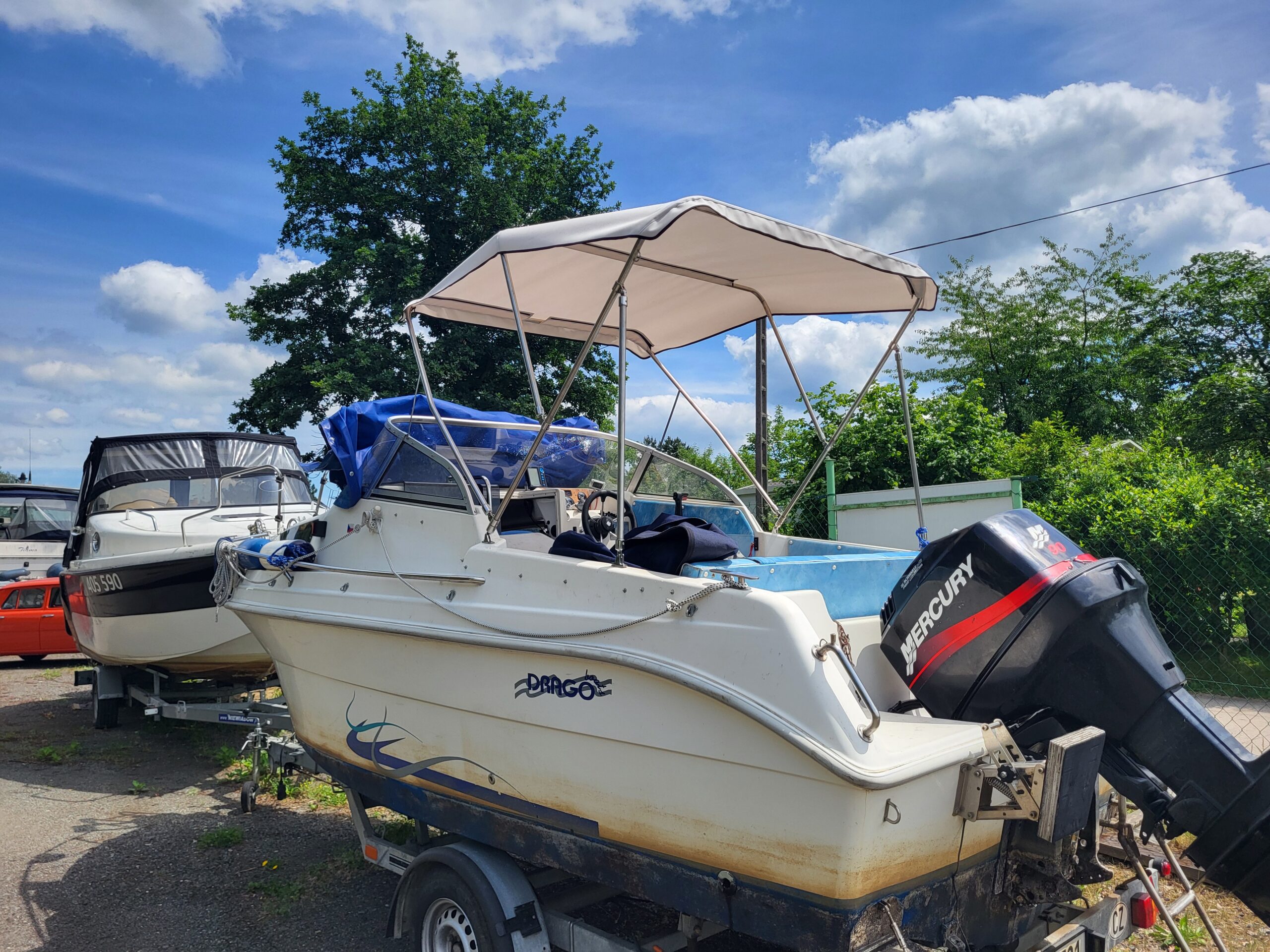 Prodám kajutový člun Drago Fiesta 510 (r. v. 2000) s motorem Mercury 90HP (2T). Ideální loď pro rodinu – bezpečná, stabilní a s velmi nízkým ponorem (40 cm), díky kterému zaparkujete v každé zátoce.