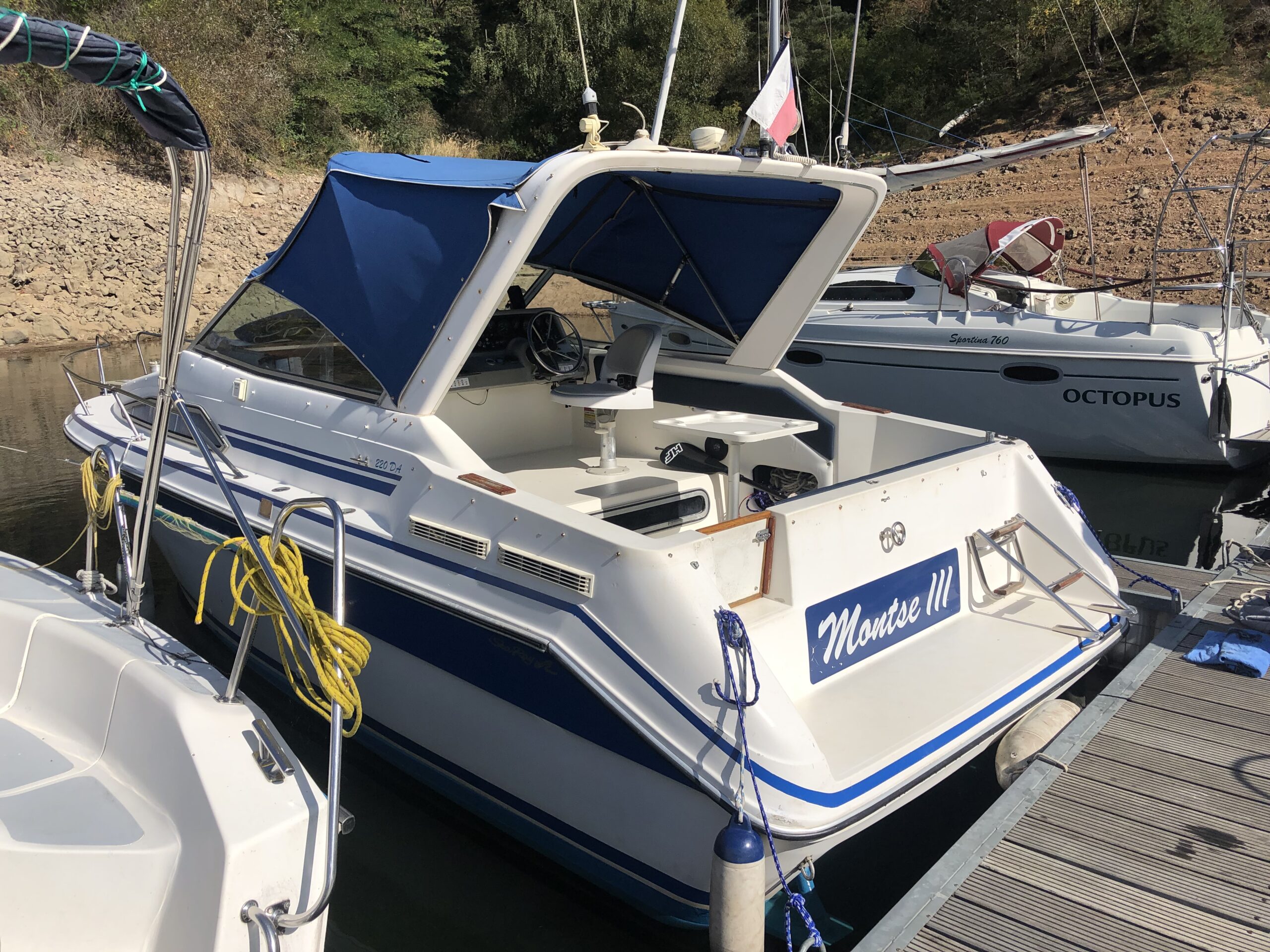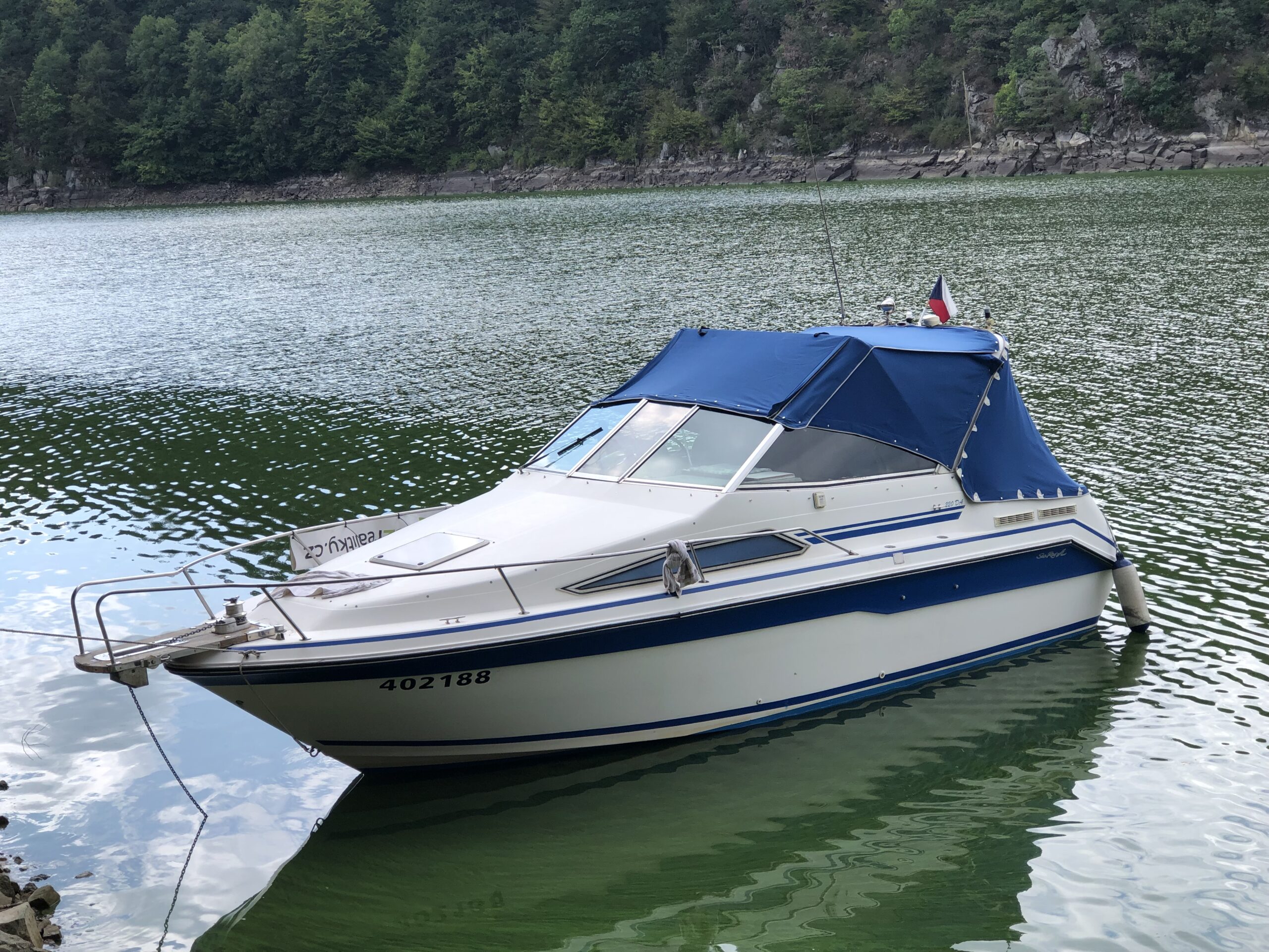 2 kajuty, pro 6 lidí, WC, sprcha, kuchyň, lednička, vařič, radio. Kotva s elektrickým navijákem - 40m řetězu. Sonar s GPS. Vše plně funkční. Nový Persenik. Přihlášeno na SPS ČR, technická rok stará. Cena za lod 280000,- Kč