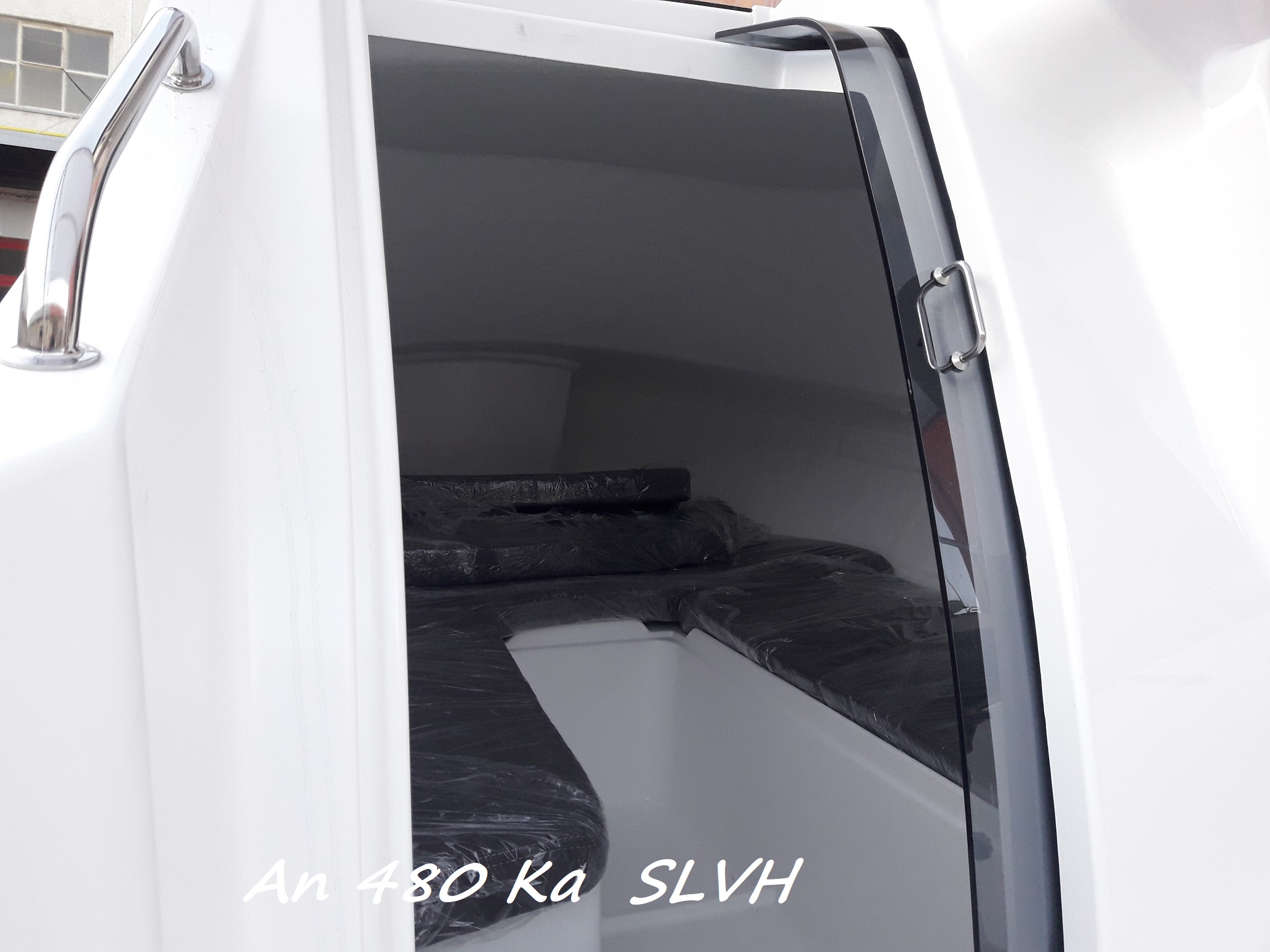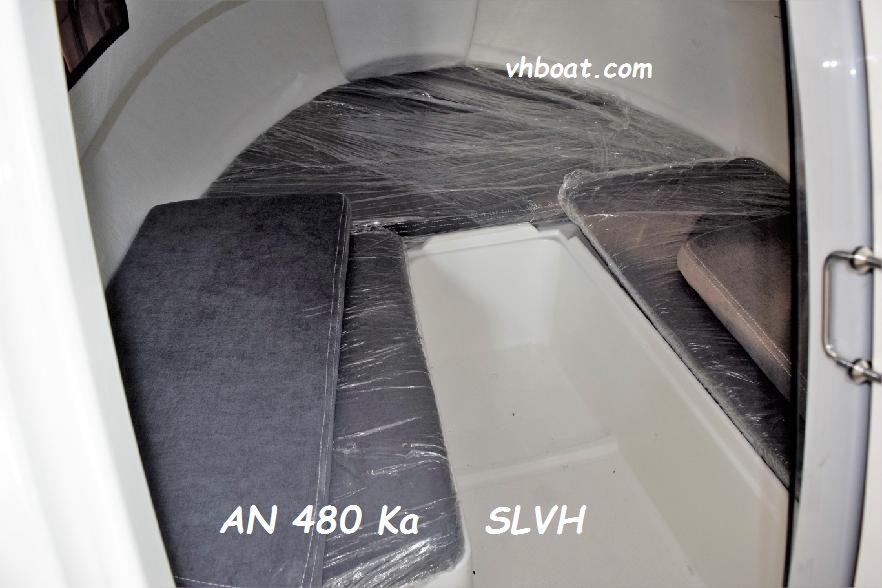Motorový kajutový člun AN 480 Ka pro sport, rekreaci i rybolov, pro 5 osob. Člun je nový určen pro vnitrozemské vody i mořskou příbřežní plavbu. V prostorné kajutě se vyspí 3 dospělé osoby. Dveře do kajuty se zasouvají, takže při otevření nezavazí. Délka 480 cm, š – 210 cm, váha – 430 kg, 5 osob, kat. C, motor max. – 60 Hp L. Standardní výbava: bílá barva, plexi štít, kladka na kotvu, schránka na kotvu a lano, 3 bakisty v kabině a 3 v kokpitu, reling na přídi a na zádi, 4 vazáky, 2 x odtok vody z kokpitu, kapitánské křeslo, žebřík do vody, polstrování v kajutě a v kokpitu, odrazová guma kolem lodi, řízení TELEFLEX - volant, převodovka, bovden. Člun má navíc, bez doplatku druhé křeslo a elektroinstalaci. Cena člunu bez motoru 222 000,-Kč Momentálně v akci za 150 000,-Kč